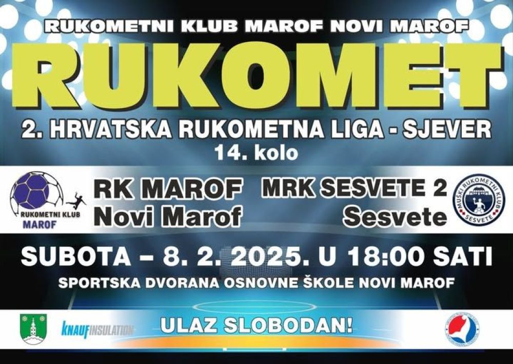 Rukomet je oduvijek popularan u Novom Marofu, a popularnost zahvaljuje i svom sugrađaninu hrvatskom reprezentativcu Blažu Lackoviću. Zato se pozivu RK na utakmice uvijek odaziva velili broj navijača, a ovajput on glasi: Nakon nešto duže pauze, ovog vikenda s nastavkom natjecanja kreću i naši seniori. Prvo kolo nastavka u Marof dovodi jednu od najboljih ekipa lige, MRK Sesvete 2. Svaki navijač na tribinama će biti velika prednost pa rezervirajte subotnje popodne za odličan rukomet!