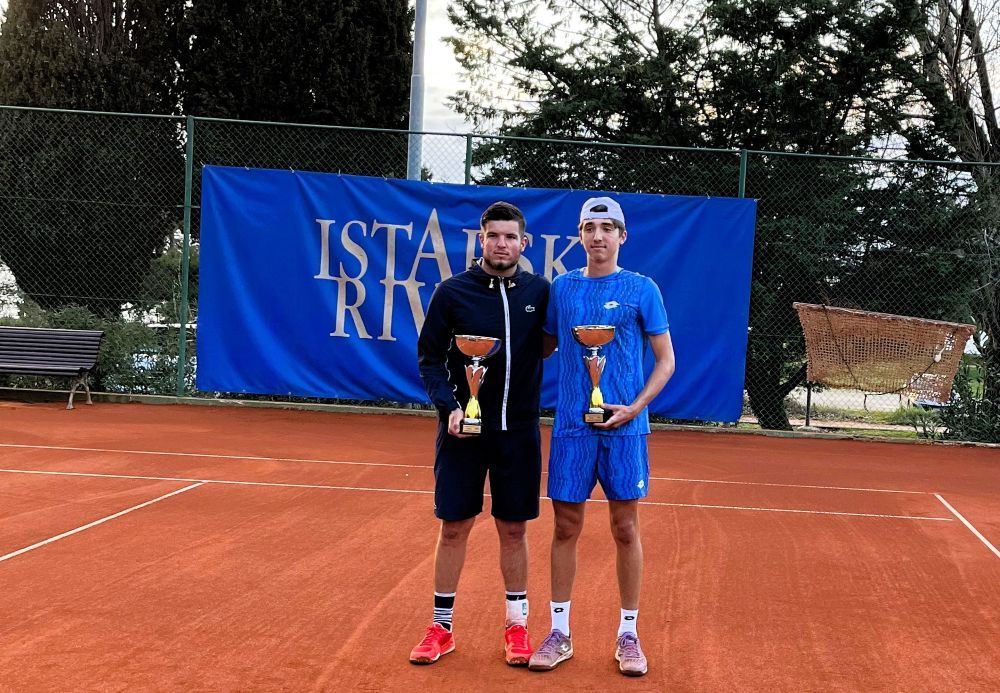POREČ - Mili Poljičak i Emanuel Ivanišević pobijedili su u hrvatskom finalu Karla Kajina i Denija Žmaka sa 6-3, 3-6, 10-5 te osvojili pobjednički trofej u konkurenciji parova na ITF M15 turniru u Poreču, prvom od tri natjecanja na 53. izdanju Istarske rivijere.