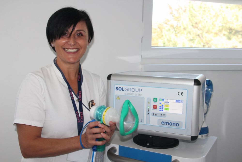 Pomoću novog uređaja rodiljama će se tijekom samog poroda omogućiti korištenje medicinskog plina, takozvanog Rajskog plina, koji se sastoji od 50% dušičnog oksidula i 50% kisika, a njegovim uzimanjem smanjuje se osjećaj boli, anksioznosti te ima opuštajući i smirujući učinak. „Sam proces poroda osjetno je olakšan zahvaljujući aparatu koji funkcionira tako da rodilja pomoću maske za udisanje sama dozira željenu količinu plina koji ublažava bol, smanjuje grčeve i ubrzava sam porod.“, pojasnila je pročelnica Službe za ginekologiju, porodništvo i neonatologiju Sanja Topličanec, dr.med., spec. ginekologije i opstetricije.