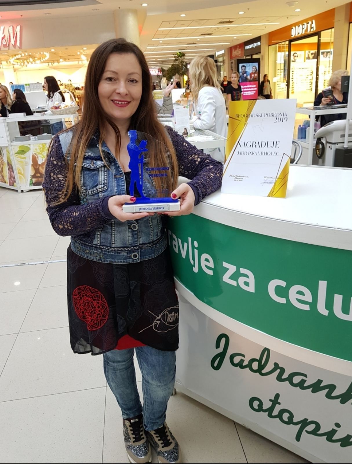 Hrvatska poduzetnica i vlasnica brenda Jadrankina otopina primila je još jednu prestižnu nagradu – radi se o nagradi Beogradski pobjednik koja joj je dodijeljena u Beogradu povodom izlaska ovog hrvatskog brenda na srpsko tržište. Nagradom je još jednom potvrđeno koliko je poduzetnički uspjeh Jadranke Vrhovec prepoznat i u susjednim državama u kojima su proizvodi brenda Jadrankina otopina vrlo traženi.