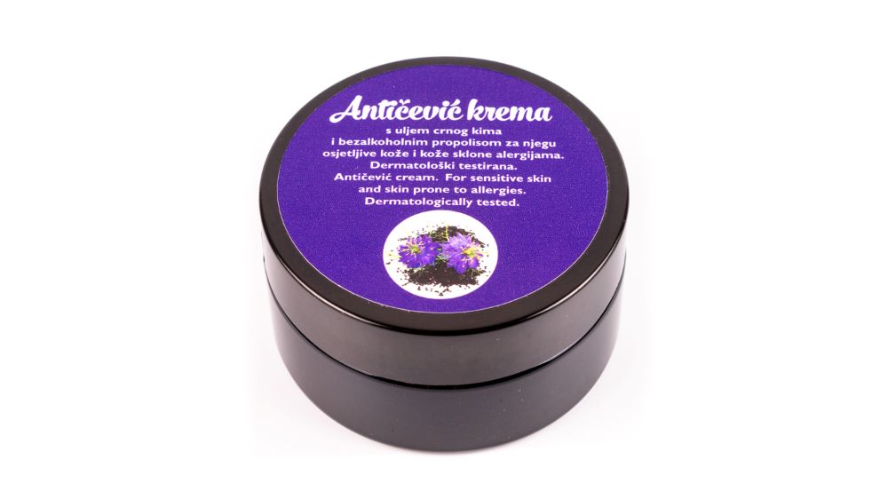 A tu je i proizvod za zdravu kožu - Antičević krema je idealna kombinacija ljekovitog ulja crnog kima i bezalkoholnog propolisa. Pomaže kod akni, psorijaze, različitih vrsta dermatitisa, kožnih ekcema, rozacee, gljivica i lišajeva, ezirepa, dekubitusa. Izrazito je pogodna za njegu suhe i ljuskave kože, kože sklone alergijama. Obnavlja i potiče zacjeljivanje ranica na koži uzrokovane širenjem gljivice Candide putem krvi koja izaziva češanje posebno kod starijih osoba. Neutralizira svrbež.