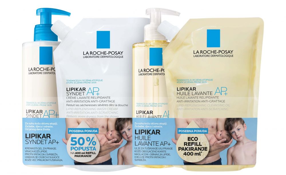 v U ljekarnama se može pronaći posebna promocija do isteka zaliha - uz kupnju Lipikar Syndet AP+ u standardnom pakiranju od 400ml, ostvaruje se popust od 50 posto na Lipikar Syndet AP+ u refill pakiranju.