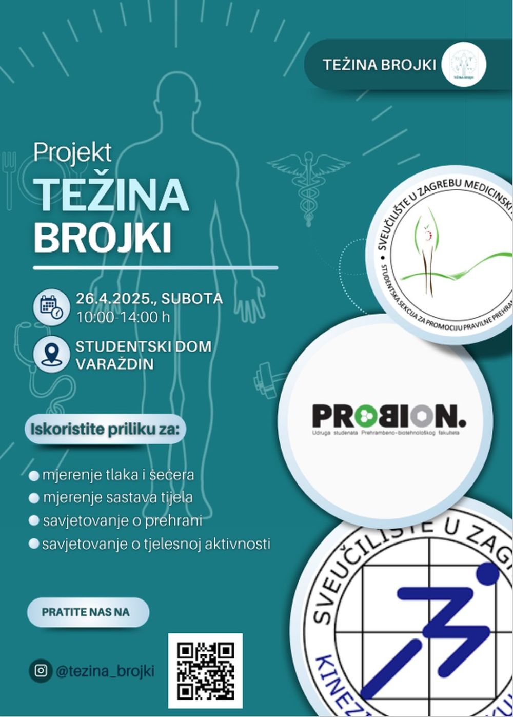 Studenti Sveučilišta u Zagrebu (Studentska sekcija za promociju pravilne prehrane i zdravlja s Medicinskog fakulteta, udruga PROBION s Prehrambeno-biotehnološkog fakulteta te studenti Kineziološkog fakulteta), udružili su snage kako bi pokrenuli interdisciplinarnu javnozdravstvenu akciju „Težina brojki“, s ciljem promicanja pravilne prehrane, redovite tjelesne aktivnosti i zdravih životnih navika.