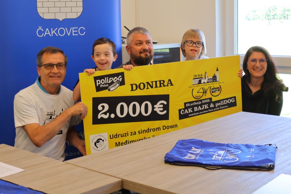 Ove je godine biciklijada Čak bajk održana četvrti put. Sudjelovalo je tisuću i tristo biciklista, a preko startnina prikupljen je i rekordni iznos, odnosno 1.804,00 eura. Humanitarnoj akciji pridružio se i sponzor utrke Perutnina Ptuj Pipo Čakovec, koji je Udruzi za sindrom Down Međimurske županije donirao dodatnih 2.000,00 eura. Ukupno, Udruzi je danas na prigodnoj konferenciji za novinare uručeno 3.804,00 eura, koje će naravno utrošiti na svoje projekte.