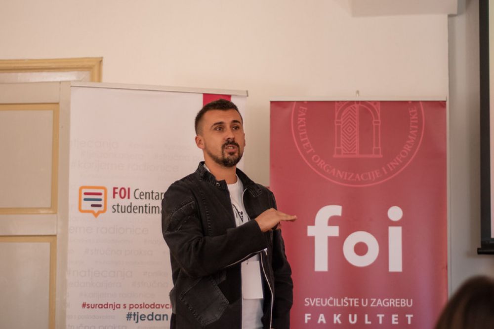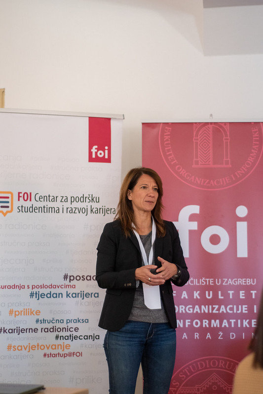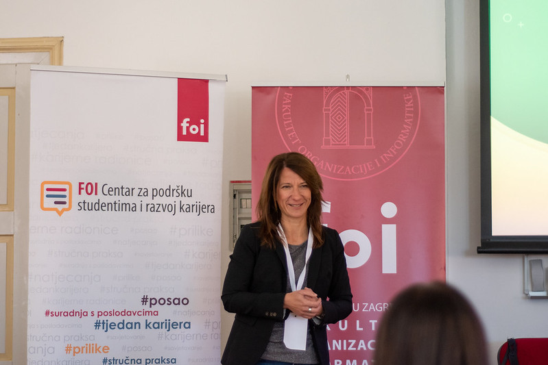 , atraktivni, adaptivni i interaktivni na trećem danu Tjedna karijera na FOI-ju! Na trećem danu Tjedna karijera studenti su se vratili u najveću dvoranu i popunili sva raspoloživa mjesta! Na zabavnoj panel diskusiji Ova e-mail adresa je zaštićena od spambota. Potrebno je omogućiti JavaScript da je vidite. - Agilni, atraktivni, adaptivni i interaktivni, Vedrana Miholić (CROZ), Goran Kanižaj (Mobilisis) i Moreno Grgurić (ecx.io), uz moderatora Karla Kukeca (Tehnološki park Varaždin) podijelili su sa studentima svoja iskustva zapošljavanja i trikove kako biti bolji u planiranju svoje karijere. Naglasili su važnost adaptivnosti i agilnosti koja dolazi i od zaposlenika samog, ali i od poslodavca. Studentima su poručili da oni zapošljavaju studente već od druge ili treće godine preddiplomskog studija i da je veoma važno da budu motivirani, no da svakako ne odustaju od fakulteta već da planiraju svoje obrazovanje i svoj obrazovni put.