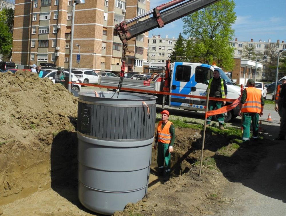 Zagreb je 1998. godine dobio prvi poklonjeni pilot projekt podzemnih kontejnera tvrtke H&G Entsorgungssysteme GmbH na južnoj strani Boćarskog doma na Prisavlju. Postavljena su četiri podzemna kontejnera za stari papir, limenke i staklo. Bio je to njihov početak i kraj jer u to vrijeme gradska komunalna služba nije bila spremna na kvantne skokove u manipulaciji otpadom, više se bavila problematikom hoće li nove HDPE kante za MKO biti crne ili „ekološke“ zelene boje. Cijena tih spremnika je u ono vrijeme iznosila cca. 10.000 njemačkih maraka po spremniku od 3 m3, odnosno preračunato u Eure oko 3.300 EUR/m3 koliko im je cijena i danas.