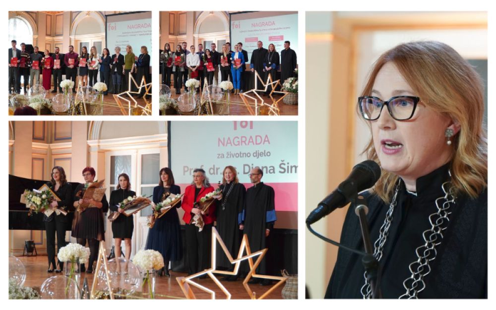 Priznanje FOI-ja uručeno je prof. dr. sc. Blaženki Divjak i Petri Vondra za najbolji znanstveni rad u časopisu s najvećim pokazateljem citiranosti časopisa (JCI), a priznanje za uspješnu poslovnu suradnju s Fakultetom dobile su partnerske tvrtke FOI-ja: SICK Mobilisis, Factory X, Oracle, Infodom, Speck, Arbona, Konzum, Emil Frey Digital d.o.o., Financijska agencija, IGEA, Intesa Sanpaolo International Value Services, PLIVA Hrvatska d.o.o., Infobip, CROZ, IBM iX, Infinum, CRO AI, Poslovna inteligencija, Photomath i Cratis.
