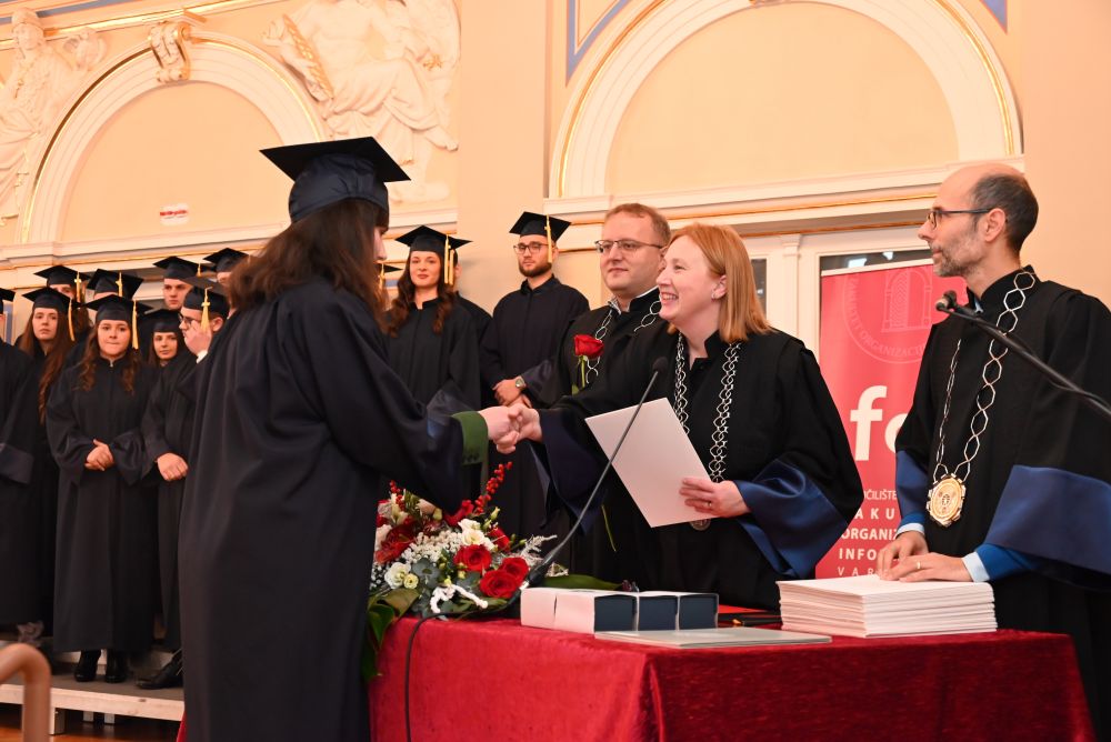 Uz dekanicu Fakulteta, prof. dr. sc. Marinu Klačmer Čalopa, promovente su u svijet akademskih građana uveli i prodekan za poslovanje i ljudske potencijale izv. prof. dr. sc. Ivan Malbašić, prodekan za nastavu i studente izv. prof. dr. sc. Zlatko Stapić, prodekan za studijske programe prof. dr. sc. Zlatko Erjavec i prodekanica za znanost, projekte i međunarodnu suradnju izv. prof. dr. sc. Martina Tomičić Furjan.