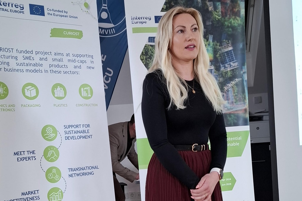 Doc. dr. sc. Khrystina Moskalova iz Metalske jezgre Čakovec predstavila je projekt CURIOST (Kružni dizajn i razvoj održivih proizvoda u čertiri ključna sektora u srednjoj Europi), financiran iz programa Interreg Central Europe. Projekt pomaže malim i srednjim poduzećima u prelasku na održive proizvodne procese i kružno gospodarstvo, razvijajući održive proizvode i nove modele kružnog gospodarstva u četiri ključna sektora: mehanici/mehatronici, pakiranju, plastici i građevinarstvu. Predstavljena su i postignuća projekta, primjeri dobre prakse te potencijal kružnog gospodarstva za revitalizaciju lokalnih gospodarstava. Iznimno zanimljivo izlaganje održala je Tea Mišić, bacc. ing. evol. sust., predstavnica Reciklaže Mišić, koja je pružila uvid u trenutno stanje sektora gospodarenja građevinskim otpadom. Bilo je riječi o recikliranim agregatima nastalim obradom građevinskog otpada kao vrijednog građevinskog proizvoda te njihovog plasmana na tržište. Opisala je postupak ukidanja statusa otpada recikliranim agregatima te promovirala uspješne projekte u kojima se koriste reciklirani agregati.