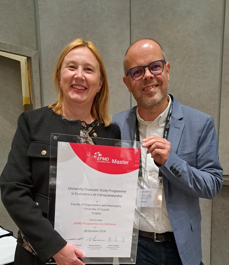 Dekanica Fakulteta organizacije i informatike, sastavnice Sveučilišta u Zagrebu, prof. dr. sc. Marina Klačmer Čalopa, službeno je primila prestižnu EFMD akreditaciju za diplomski studij Ekonomika poduzetništva na svečanoj ceremoniji u sklopu EFMD Annual Conference 2025, koja se od 1. do 3. lipnja održava u Münchenu, Njemačka.