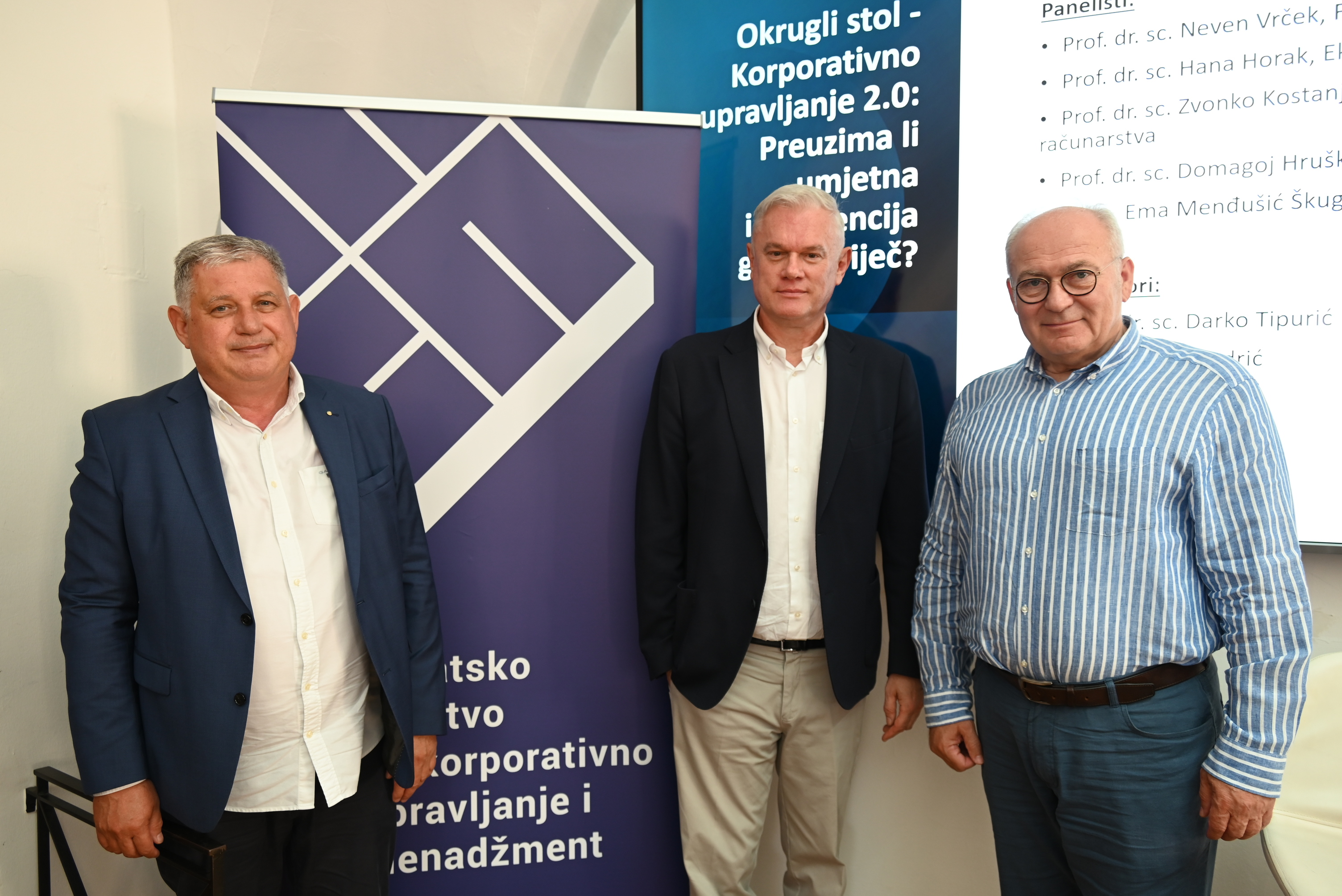 U vremenu u kojem umjetna inteligencija sve snažnije utječe na donošenje poslovnih odluka, upravljanje rizicima, analizu podataka i nadzor nad poslovanjem, otvorila su se važna pitanja o ulozi i granicama umjetne inteligencije u području korporativnog upravljanja. Okrugli stol okupio je vodeće stručnjake iz područja tehnologije, prava i menadžmenta, kako bi se zajednički pokušalo odgovoriti na pitanje mijenja li umjetna inteligencija samu prirodu korporativnog odlučivanja i može li, te u kojoj mjeri, zamijeniti ljudsku prosudbu.