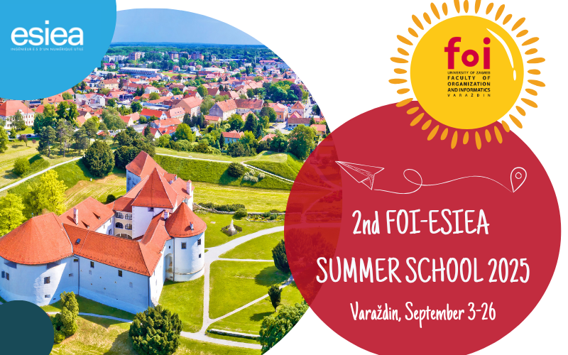 Sveučilište u Zagrebu Fakultet organizacije i informatike (FOI) ponovno je domaćin međunarodne ljetne škole za domaće i strane studente – 2. FOI–ESIEA Summer School, koja se od 22. do 25. rujna održava u Varaždinu. Studenti francuske inženjerske škole ESIEA ponovno su odabrali FOI za svoje međunarodno iskustvo i dodatno usavršavanje, potvrđujući dugogodišnju tradiciju uspješne suradnje, visoku kvalitetu obrazovnih programa i prepoznatljivost Fakulteta na međunarodnoj akademskoj razini.
