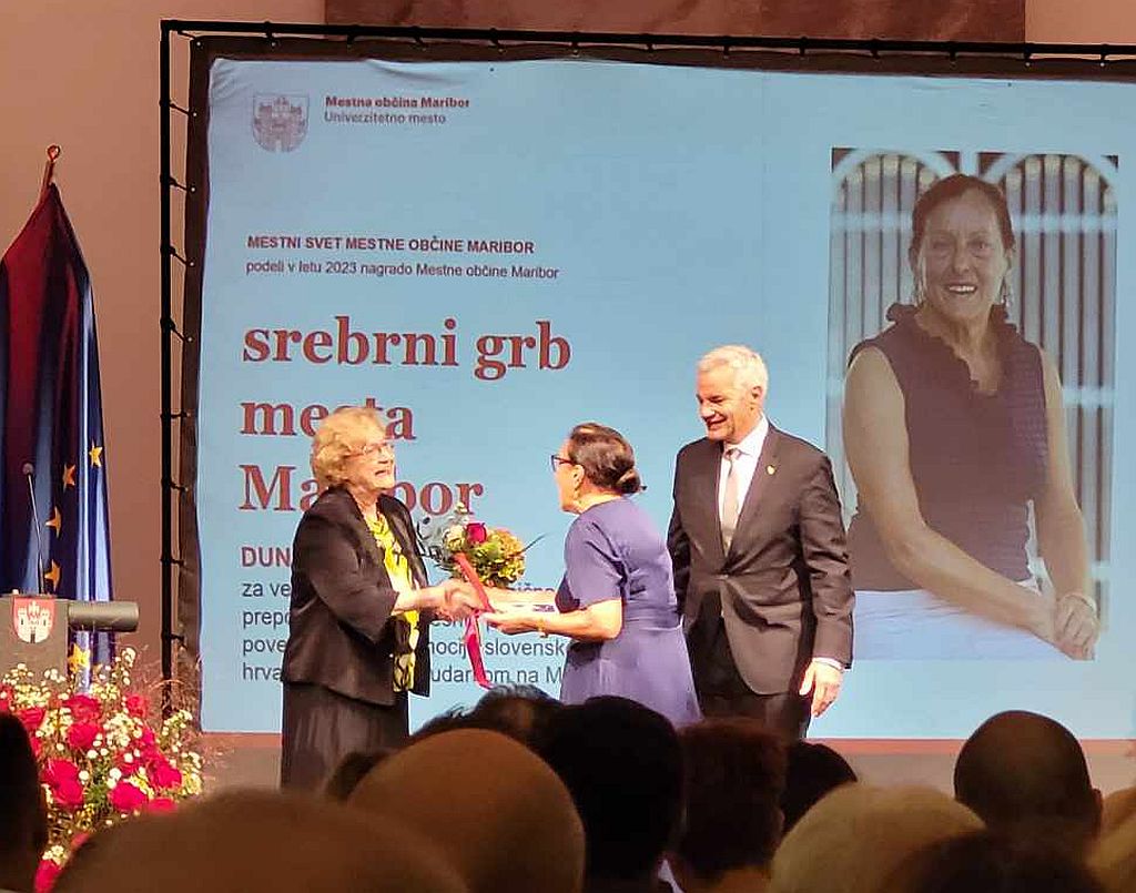 Profesorica Dunja Pavelić Bezjak, rođena Varaždinka koja dugi niz godina živi i radi u Mariboru, u četvrtak 19. listopada 2023. godine primila je visoko javno priznanje – Srebrni grb grada Maribora. Na svečanosti povodom Dana grada, kojom se proslavila 859. obljetnica prvog pisanog spomena Maribora u Sloveniji, Srebrni grb grada Maribora uručio joj je gradonačelnik Sašo Arsenovič.