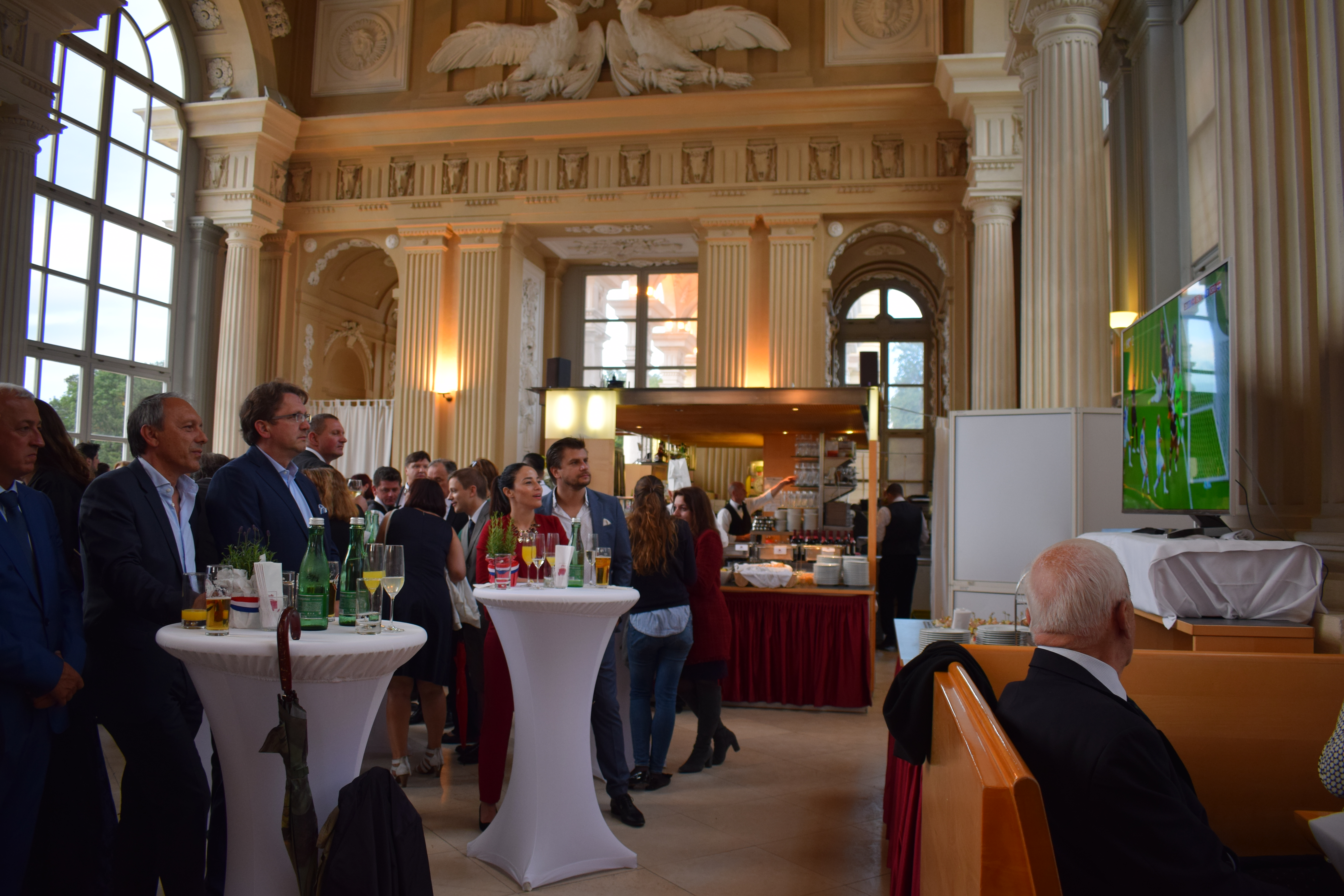 -Tako je, ne bi moglo bez toga, i evo imamo dva ekrana gdje se može pratiti utakmicu Hrvatske protiv Islanda. Srećom nije odlučujuća, i kao što vidim, priča se, sluša glazba,ali jednim okom gleda se i utakmica, ali onako nenametljivo.