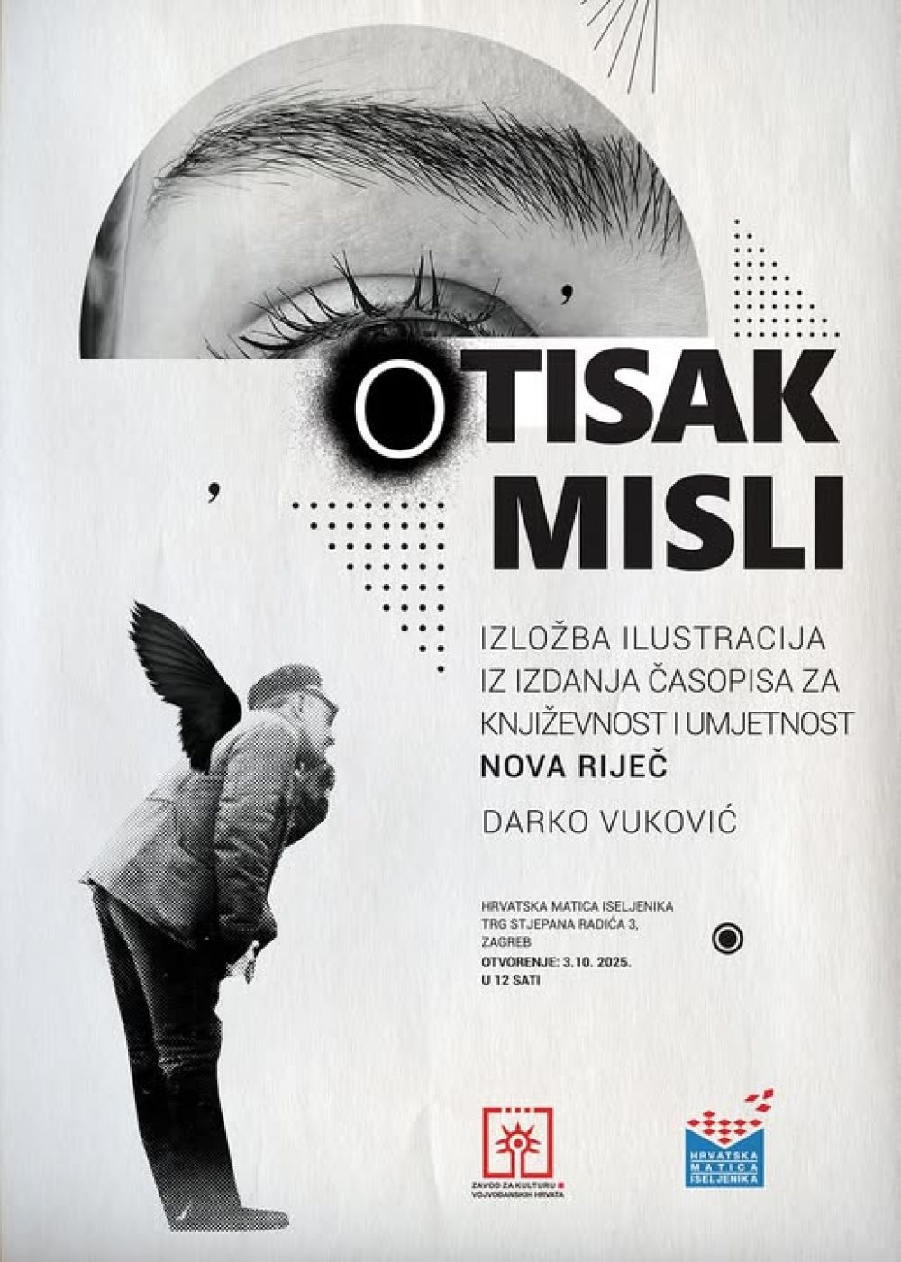 U organizaciji Zavoda za kulturu vojvođanskih Hrvata i Hrvatske matice iseljenika, od 3. listopada u prostorima HMI-ja u Zagrebu, možete razgledati izložbu ilustracija Darka Vukovića pod nazivom “Otisak misli”