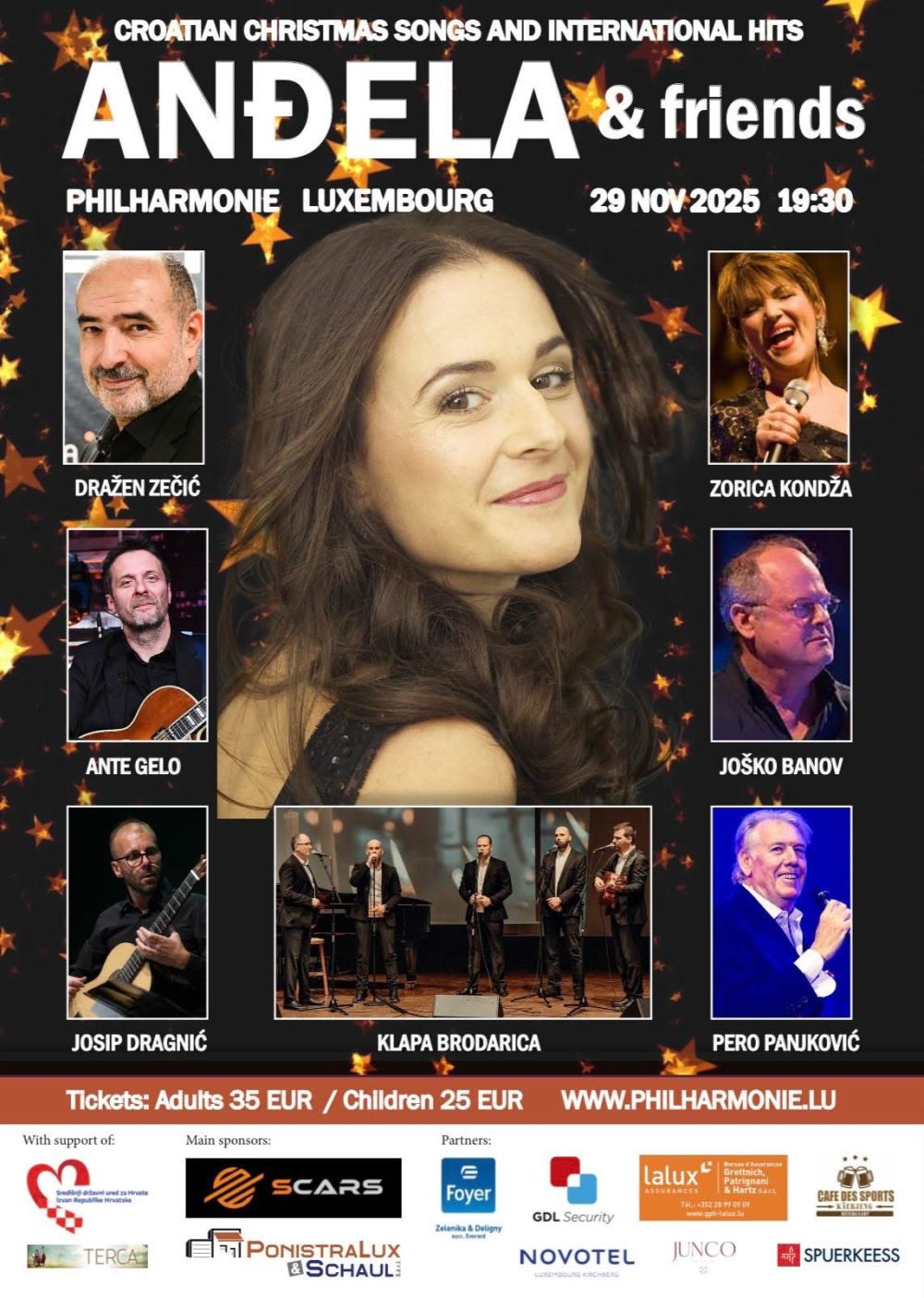 Luksemburg – U petak, 29. studenoga, Luksemburska filharmonija (Philharmonie Luxembourg) bit će mjesto koncerta hrvatske pjevačice Anđele Zelić pod nazivom Anđela & friends. "Znam da ipak misliš da sam kriva ja za sve i da moja sreća tvoju uzela je”, stihovi su velikog hita “Ima li nade za nas” koji je 1998. godine tada 17-godišnja Anđela Kolar (udana Zelić) otpjevala u duetu s Draženom Zečićem ne sluteći da će gotovo dva i pol desetljeća poslije ista pjesama i dalje odzvanjati sa zabava i iz klubova. Anđela se u međuvremenu odselila iz Hrvatske, trenutačno živi u Luksemburgu, zasnovala je obitelj sa suprugom Edijem, s kojim ima troje djece, no od glazbe nikada nije odustala.