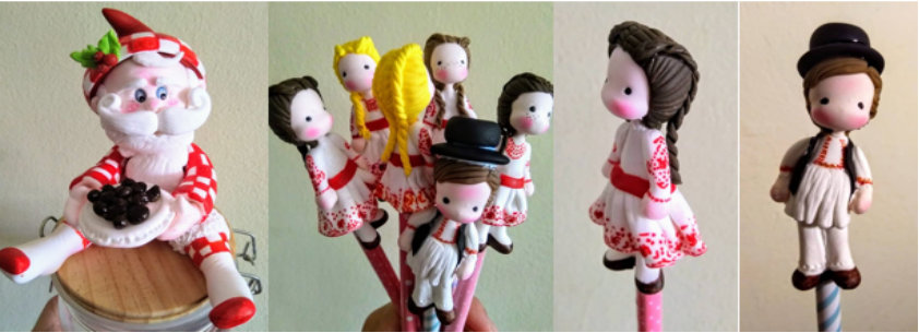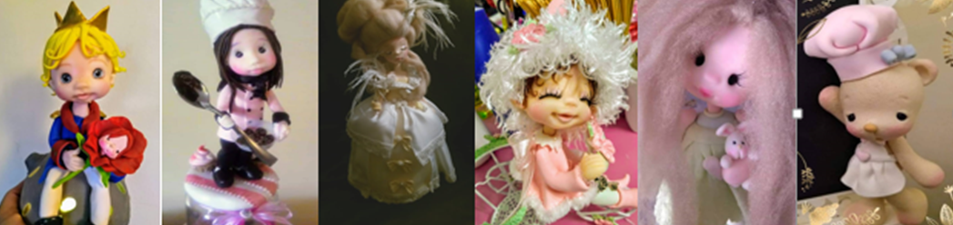 Me separé después de muchos años y esto me llevó sin querer por motivos de tiempo, y poder estar con mis hijas a renunciar a mi trabajo. En ese tiempo estaba aprendiendo la técnica del modelado en porcelana en frío. Lo que nunca pensé, es que al hacer dos muñequitas para mis hijas se me abriera un nuevo mundo, en el que por cierto ya llevo 7 años y me hace muy feliz, ya que con este mágico arte de modelar soy parte de los momentos felices e importantes de las personas porque ellos me piden figuras para sus fiestas, bautizos, graduaciones, matrimonios y cumpleaños.