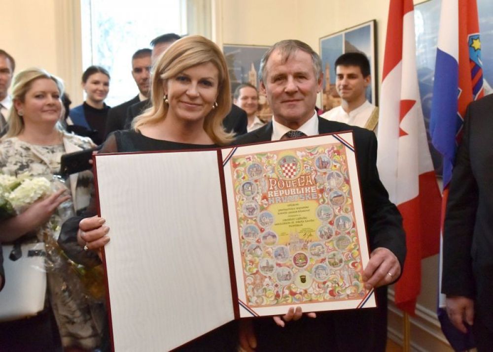 Za nesebičan i izniman doprinos u pružanju socijalne i duhovne skrbi te za dugogodišnju pastoralnu djelatnost među hrvatskim iseljenicima u Kanadi, predsjednica Grabar-Kitarović dodijelila je Povelju Republike Hrvatske Župi Sv. Nikole Tavelića – Montreal i Hrvatskoj katoličkoj župi sv. Leopolda Mandića – Ottawa, kao i Hrvatsko-kanadskom folklornom savezu – istok, za izniman i dugogodišnji doprinos u promicanju hrvatske baštine, jezika, kulture i folklora, te očuvanje hrvatskog identiteta u Kanadi.