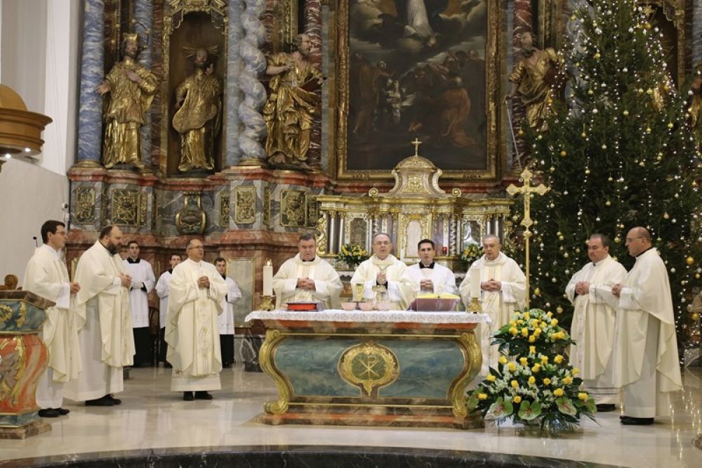 Veliki broj vjernika ispunio je varaždinsku katedralu na božićnoj misi polnoćki koju je u zajedništvu s kanonicima Stolnog kaptola i svećenicima iz središnjih biskupijskih ustanova predslavio varaždinski biskup Bože Radoš. Varaždinski tamburaški orkestar svirao je tradicionalne hrvatske božićne pjesme, a pjevao je katedralni zbor Chorus Dominicalis.