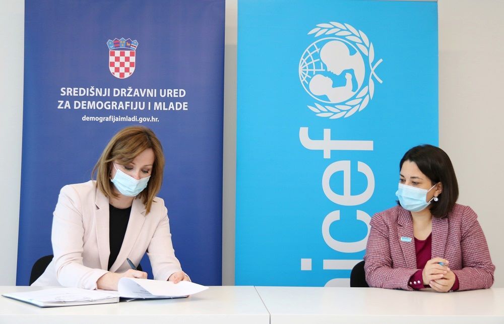 Središnji državni ured za demografiju i mlade i UNICEF potpisali su sporazum o suradnji na promicanju prava djece i mladih u Hrvatskoj. Ciljevi su suradnje Središnjeg državnog ureda za demografiju i mlade i UNICEF-a zajedno raditi na osiguravanju većeg sudjelovanja mladih u procesima donošenja odluka, osiguravanje mladima prilika za učenje nekih od vještina koje su im potrebne za uspjeh u životu te stvaranje različitih mogućnosti za promicanje i ostvarivanje dječjih prava, uključujući pravo na predškolski odgoj i obrazovanje. Sporazum predviđa sljedeće oblike suradnje:podršku inovativnoj digitalnoj platformi ZABUM voicekoja će pomoći da se glas mladih o njima važnim pitanjima čuje i uvažava;sudjelovanje u radu Savjetodavnog odbora za dječju participaciju i podršku UNICEF-ovu programu za mlade ZABUM – za budućnost mladihkroz koji će se razvijati rješenja za izazove s kojima se mladi u Hrvatskoj suočavaju te podržati mlade u razvoju vještina potrebnih u 21. stoljeću:promicanje dobrih praksi u poslovnom sektoru kojima će se nastojati povećati broj tvrtki koje ulažu u stvaranje podržavajućeg ozračja za zaposlenike i njihove obitelji te poraditi na usklađivanju poslovnog i privatnog života zaposlenika na dobrobit djece:Središnji državni ured za demografiju i mlade i UNICEF surađivat će i na promicanju demografskih politika, uključujući i promicanje prava svakog djeteta na predškolski odgoj i obrazovanje.
