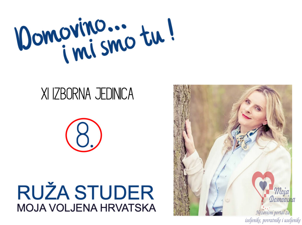 Jedna od kandidatkinja je Ruža Studer, urednica portala Moja domovina iz Švicarske, koja poručuje - Želimo li promjene moramo ih sami potaknuti – Probudi se hrvatski narode!