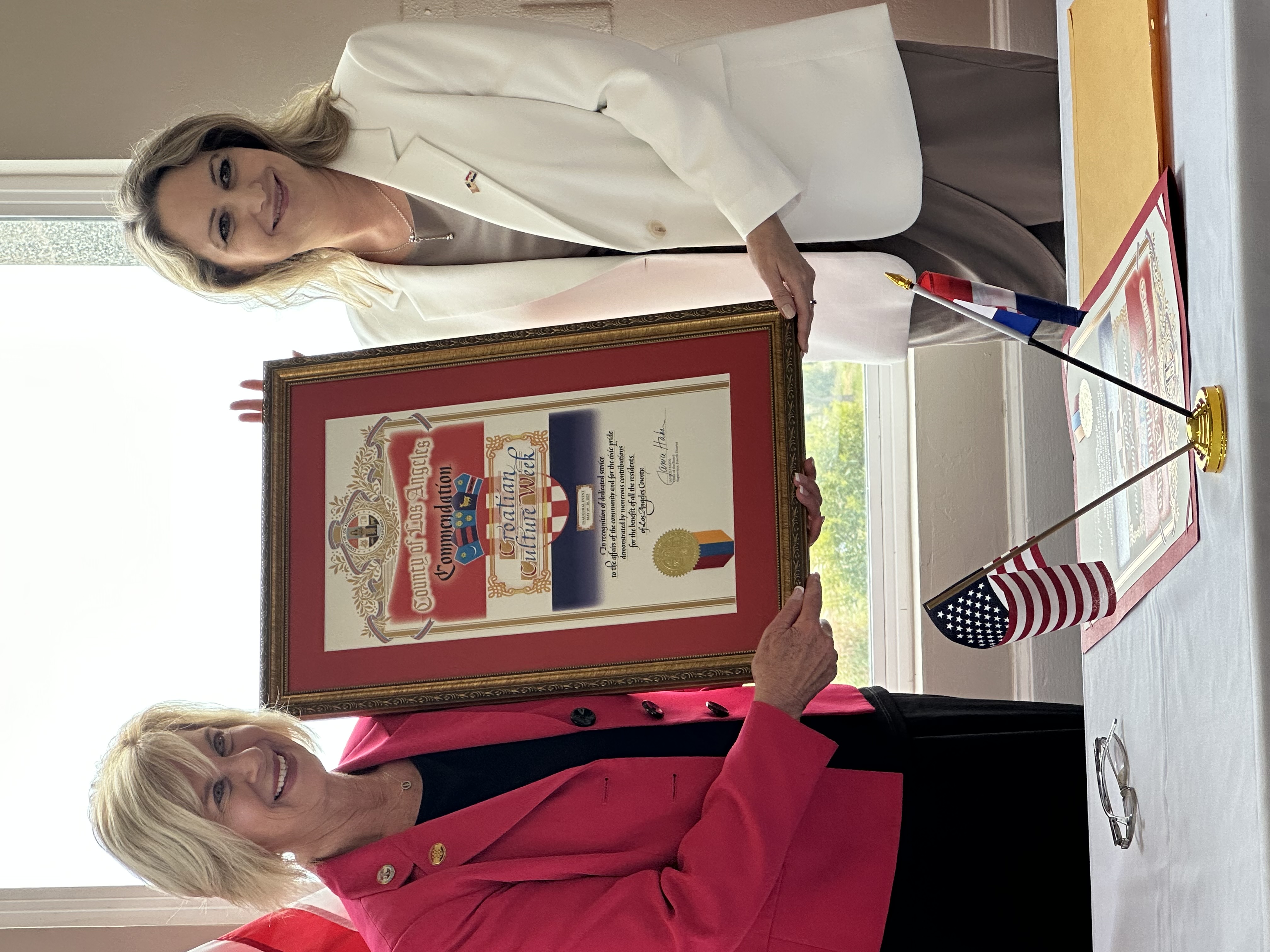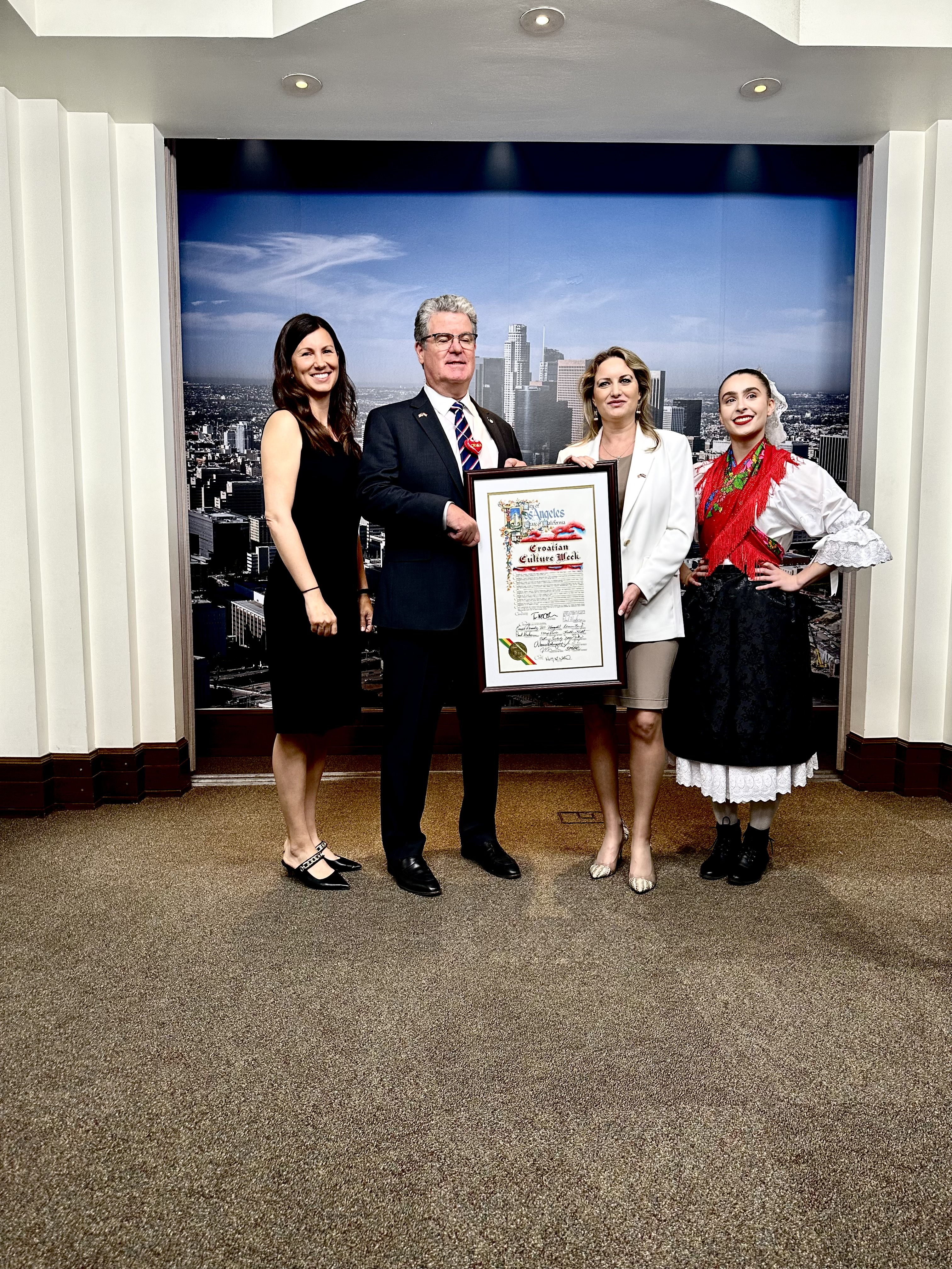 Istoga dana, na ribljem ručku u Dalmatinskom klubu u San Pedru, Janice Hahn, predsjednica Odbora supervizora Okruga LA, koji broji 10 milijuna ljudi, uručila je generalnoj konzulici Pea Povelju Okruga Los Angeles kojim je proglašen Hrvatski kulturni tjedan, rekavši: "Ponosna sam što predstavljam jednu od najvećih hrvatsko-američkih zajednica u zemlji. Hrvatski imigranti pomogli su oblikovati San Pedro kakvog ga danas poznajemo i volimo".