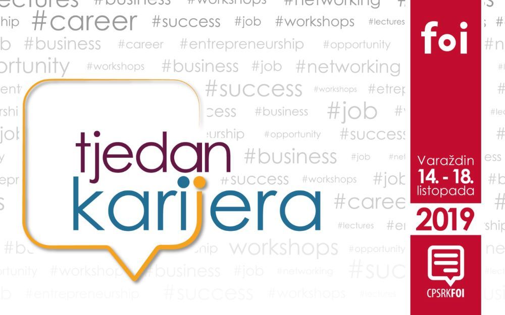 Od ponedjeljka do petka, 14. do 18. listopada na Fakultetu organizacije i informatike u Varaždinu održava se jedno od najvećih karijernih događanja za studente u Hrvatskoj. Osmi Tjedan karijera u organizaciji Centra za podršku studentima i razvoj karijera FOI-a započinje u ponedjeljak u 10 sati u dvorani 1 (FOI 1, Pavlinska 2, Varaždin), panel diskusijom s uspješnim bivšim studentima FOI-a.
