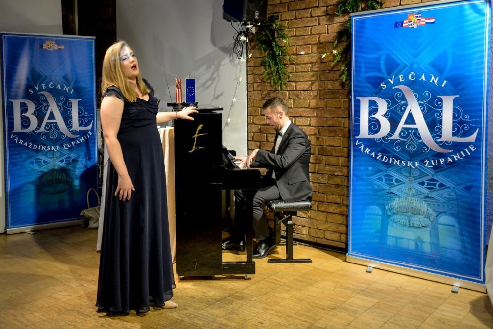 Glazbeni štih predstavljanju Svečanog bala Varaždinske županije u Beču dala je mlada varaždinska sopranistica na studiju u Beču Lucija Spevec uz pratnju pijanista i profesora Glazbene škole Varaždin Danijela Ota.