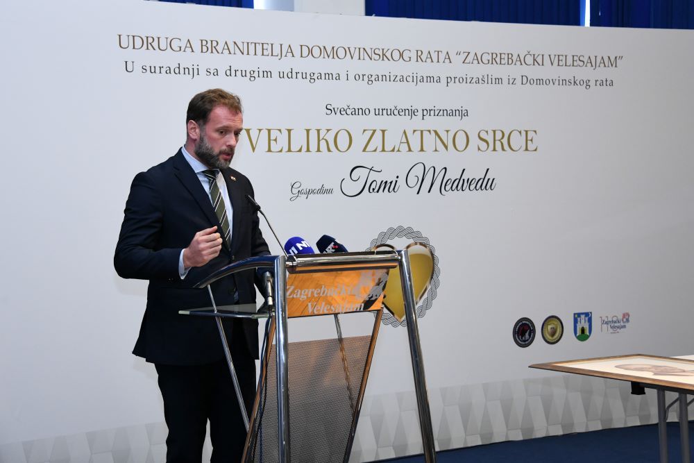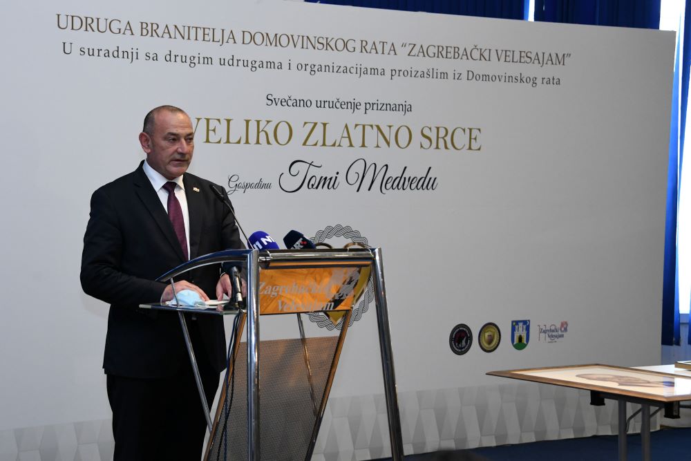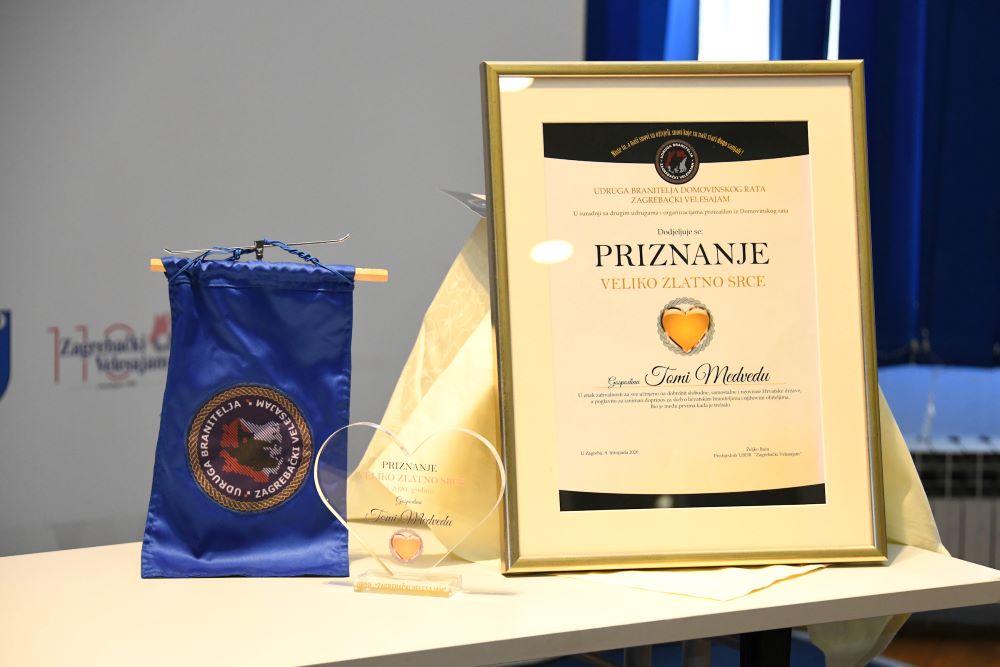 Ministar obrane Mario Banožić ujedno izaslanik predsjednika Vlade RH sudjelovao je u petak, 9. listopada 2020. godine na dodjeli 8. priznanja „Veliko zlatno srce“.Priznanje potpredsjedniku Vlade RH i ministru hrvatskih branitelja Tomi Medvedu u Zagrebu dodijelila je Udruga branitelja Domovinskog rata „Zagrebački velesajam“, Udruga hrvatskih branitelja Domovinskog rata u suradnji s drugim udrugama i organizacijama proizašlih iz Domovinskog rata za izniman doprinos u stvaranju slobode i samostalne Republike Hrvatske, očuvanju i širenju istine o Domovinskom ratu.