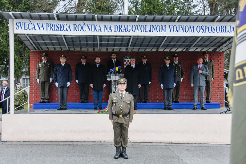 Prvi dočasnik Oružanih snaga Republike Hrvatske časnički namjesnik Dražen Klanjec u toj je prigodi kazao kako samo rijetki imaju čast prisegnuti Domovini.„Budite predani u služenju Domovini i odlučni i ustrajni u izvršavanju svih zadaća. Ispunite svoje snove daljnjim stjecanjem novih znanja i sposobnosti i stalnim usavršavanjem. U najtežim uvjetima u kojima samo vojnikinje i vojnici mogu izvršavati svoje zadaće, u trenucima najvećih odricanja, neka vas nosi duh hrvatskih branitelja iz Domovinskog rata koji su jednog dana nosili ovu istu časnu odoru koji i vi danas nosite“, poruka je prvog dočasnika Hrvatske vojske.Podsjetimo, obuka dragovoljnog vojnog osposobljavanja započela je 26. veljače, a njezin završetak predviđen je 23. travnja. O vrijednim iskustvima i izazovima tijekom obuke ispričao je vrhunski sportaš ročnik Filip Mihaljević koji je nedavno osvojio brončanu medalju u bacanju kugle na Europskom dvoranskom prvenstvu u Torunu.