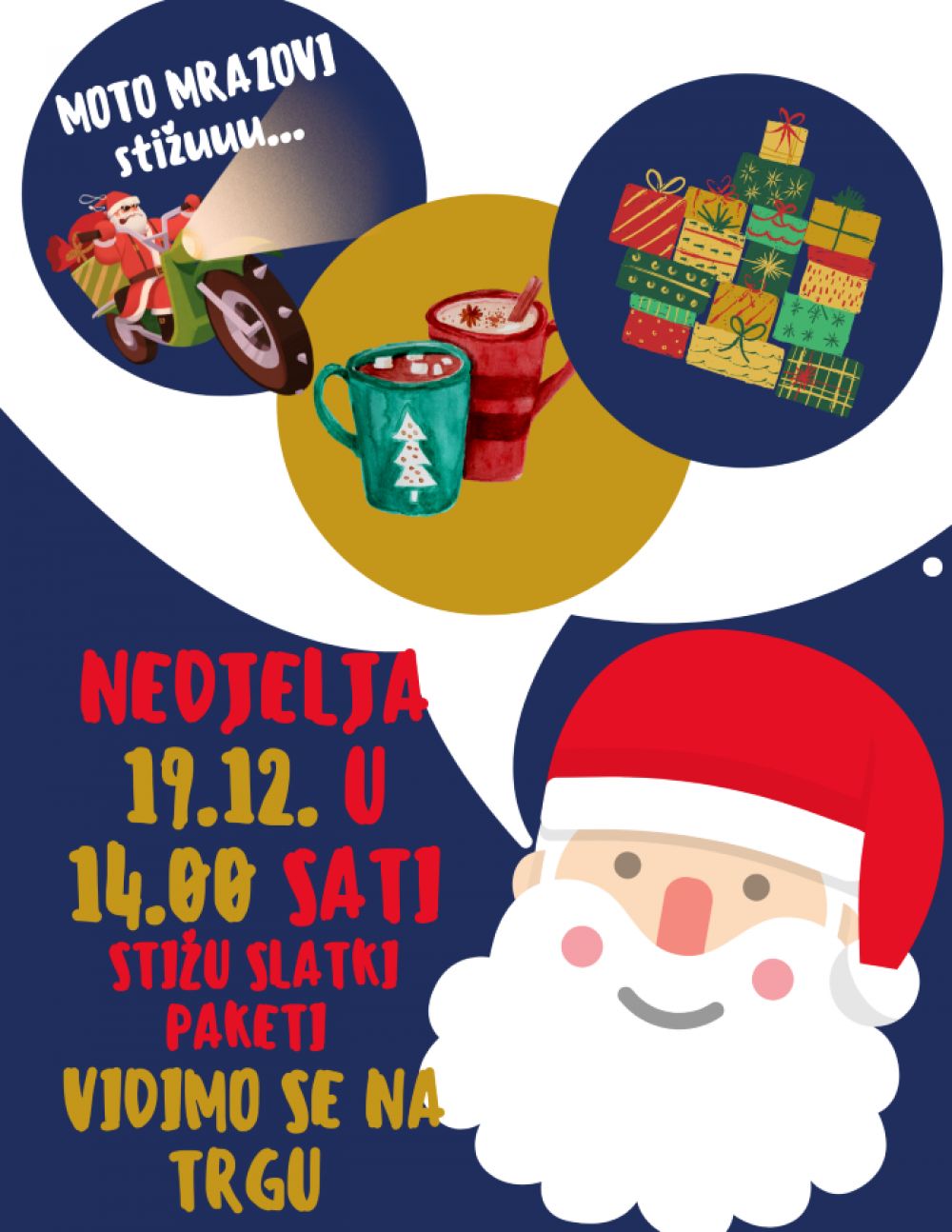Posljednju svjećicu pale ovu nedjelju, 19. prosinca kada stižu i Motomrazovi (MK Aquabikers i prijateljski moto klubovi) sa slatkim paketima za najmlađe. Događanje će biti na Trgu u 14 sati, uz besplatno kuhano vino, čaj i fritule.