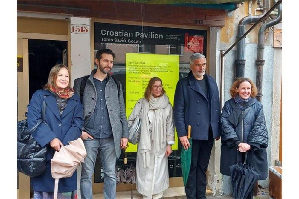 Hrvatska se od 22. travnja na Venecijanskom bijenalu – 59. Međunarodnoj izložbi vizualnih umjetnosti predstavlja projektom „Bez naziva (Hrvatski paviljon) 2022“ umjetnika Tome Savića-Gecana i kustosice Elene Filipović. Prigodom neformalnog otvorenja, odnosno početka odvijanja projekta na adresi Via Garibaldi, Castello 1513 u Veneciji, ministrica kulture i medija dr. sc. Nina Obuljen Koržinek čestitala je umjetniku i kustosici te svim autorima koji su bili uključeni u produkciju ovog interdisciplinarnog projekta koji kroz medije i dnevne vijesti, a preko umjetne inteligencije do izvedbe petero izvođača, navodi na promišljanje o izazovima trenutka u kojem živimo.