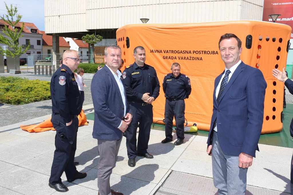Gradonačelnik i Župan zajedno su obišli i smotru vatrogasnih vozila i opreme na Kapucinskom trgu i prisustvovali prezentaciji prikaza mogućnosti intervencije u akcidentima s opasnim tvarima, tehničkim intervencijama u prometu, spašavanju iz voda i na vodi, intervencije iz dubina i sa visina.