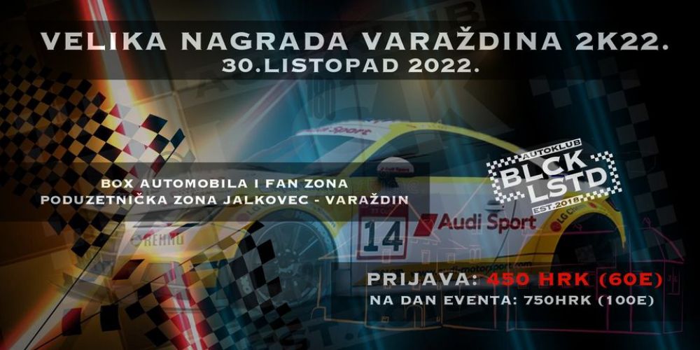 U nedjelju, 30. listopada 2022. godine u Varaždinu, na ulicama u Poslovnoj zoni Jalkovec, bit će pod pokroviteljstvom Grada Varaždina održana automobilistička utrka Blacklisted Cup - „Velika nagrada Varaždina 2K22“. Organizator utrke je Auto klub Blacklisted, a svečano otvaranje utrke je najavljeno u 12:30 sati u predjelu boksa vozača. Utrku će otvoriti zamjenik gradonačelnika Miroslav Marković.