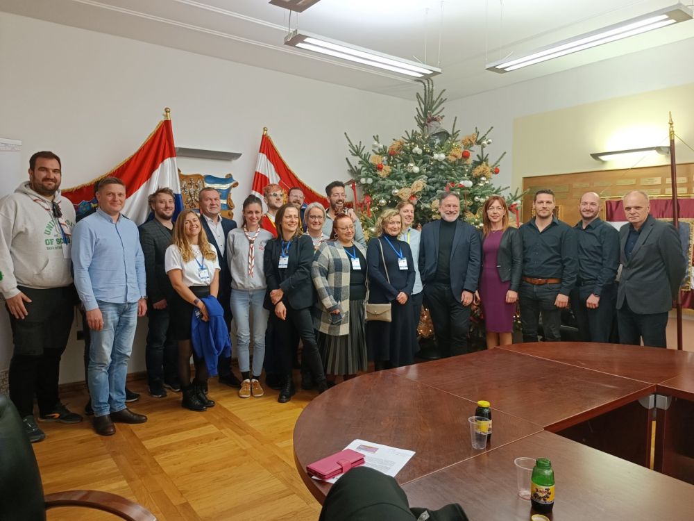 Župan Anđelko Stričak je sa zamjenicom Silvijom Zagorec te pročelnicima dr. sc. Miroslavom Huđekom i Darkom Majhenom u Županijskoj palači priredio prijam za programskog direktora European Youth Eventa Ninu Preložnjaka, direktora Ureda europskih parlamenata Stephena Clarka i njihove suradnike.