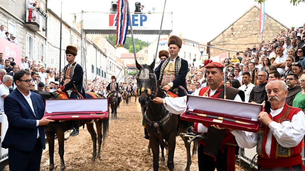 Predsjednik Milanović završio je govor čestitajući alkarima i narodu Sinja te naglasio važnost očuvanja hrvatskog identiteta, povijesti i zajedništva.