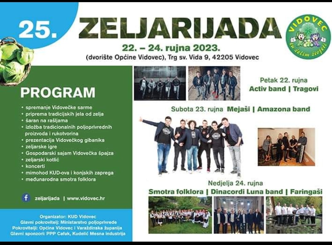 To je jedina gastro manifestacija, takvog karaktera gdje se promoviraju autohtoni i zaštićeni naši proizvodi, naše varaždinsko zelje, promovira se kultura i gastronomija našeg kraja. To je za nas izuzetno važna i turistička manifestacija, a posljednjih nekoliko godina dosta ulažemo u razvoj turizma kroz izgradnju etno kuće, vinskog podruma i upravo su tu naše udruge izuzetno dobro uključene. Zahvaljujem svim udrugama koje su se uključile u ovu Zeljarijadu pozivam sve ljude da nam se pridruže sva tri dana, a s obzirom na to da ove godine nastupaju kulturno – umjetnička društva iz Makedonije i Italije to će biti jedan lijepi spektakl- rekao je Hranić. A da je ove godine pripremljen zaista bogati i raznovrstan program potvrdila je Ines Pavleković, predsjednica KUD-a Vidovec.