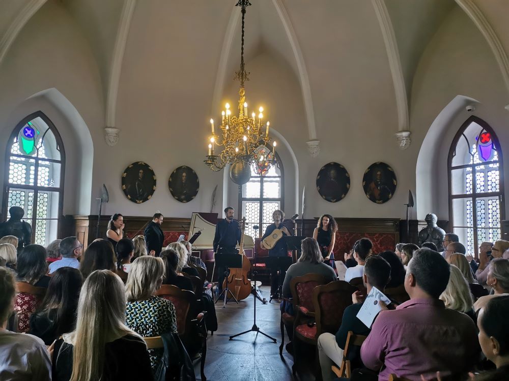 Sam koncert upriličen je u predivnoj viteškoj dvorani dvorca, a ansambl koji je publici s velikim užitkom muziciranja prenosio umilne zvuke glazbe iz razdoblja ranog baroka činili su Alfia Bakieva na violini, Luca Bandini, viola, Michelle Vanelli, čembalo, Giovanni Bellini, teorba uz već spomenutu Giulliu na blok-flauti i dulcianu. Bio je to glazbeni doživljaj za pamćenje.