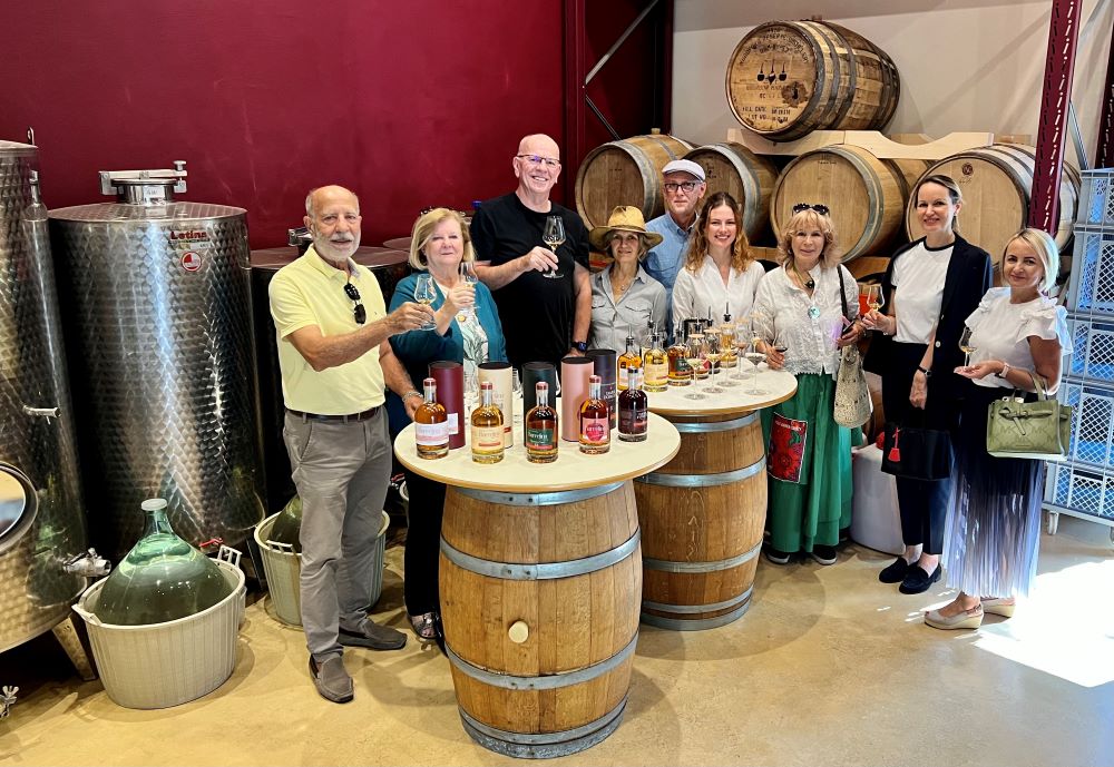 Tom prigodom organiziran je posjet boutique destileriji obitelji Brigljević u kojoj smo saznali kako je nastao leteći mačak. Naime, mačke i gin dijele jednu posebnu vezu još iz 18. stoljeća. U skrivenim kutevima londonskih ulica, lik mačka bio je tajni simbol za ilegalne točionice gina. Nadahnuti tom pričom u destileriji Brigljević su 2016. godine osmislili prvi hrvatski craft gin pod imenom Flying Cat Gin. Miljenko Brigljević, osnivač destilerije, i njegova kći Gabrijela zajedno proizvode gin, rakije i voćne likere. I nemojte se iznenaditi kada naiđete n pića s 55% alkohola. U destileriji je ponuđena i zakuska vrhunskog velikogoričkog restorana Mon Ami, koji se s razlogom nalazi u knjizi 100 vodećih restorana Hrvatske.