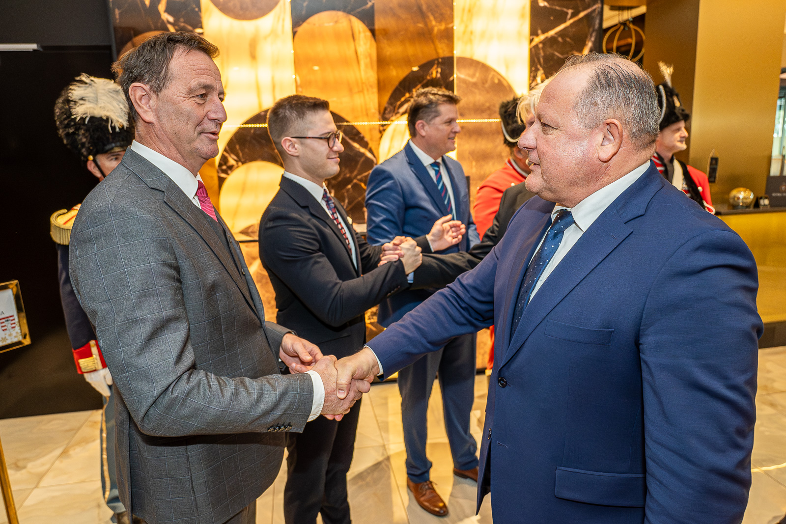 Župan Varaždinske županije Anđelko Stričak poseban pozdrav uputio je ministru Habijanu te istaknuo da njegov prvi službeni dolazak Varaždinu i Varaždinskoj županiji najbolje govori o njegovim vrijednostima, te da nije zaboravio sredinu u kojoj je odrastao. Za nas je ovo bila uspješna godina, a o tome govore sve investicije koje smo odradili, a zahvaljujući vama. Kad je teško najbitnije je da kad pogledaš lijevo ili desno da je netko uz tebe, a vi ste uvijek uz nas i na tome vam od srca hvala. Početkom godine predvidjeli smo 50 važnih investicija za područje Varaždinske županije. Godinu još nismo završili, a već smo povećali broj investicija na 65 u vrijednosti 355 milijuna eura. Kad još k tome dodamo sve ove projekte koje provodite vi, predstavnici države, tvrtki, općina, gradova, naši gospodarstvenici, poduzetnici dolazimo do nekoliko stotina milijuna eura i vjerujem da nas sve ovo raduje – naglasio je župan Stričak koji je novom ministru uručio prigodan dar.Statuu Varaždinskog husara kojeg je odlikovala hrabrost, požrtvovnost, ljubav prema kraju i domovini, a vjerujem da će Damir Habijan kao ministar raditi za boljitak ne samo Varaždina i Varaždinske županije, nego cijele Hrvatske, te kišobran sa sloganom „Županija s pričom“ da ga čuva od svih bura, nevera, nevremena, obzirom na resor koji vodi – objasnio je župan Stričak.