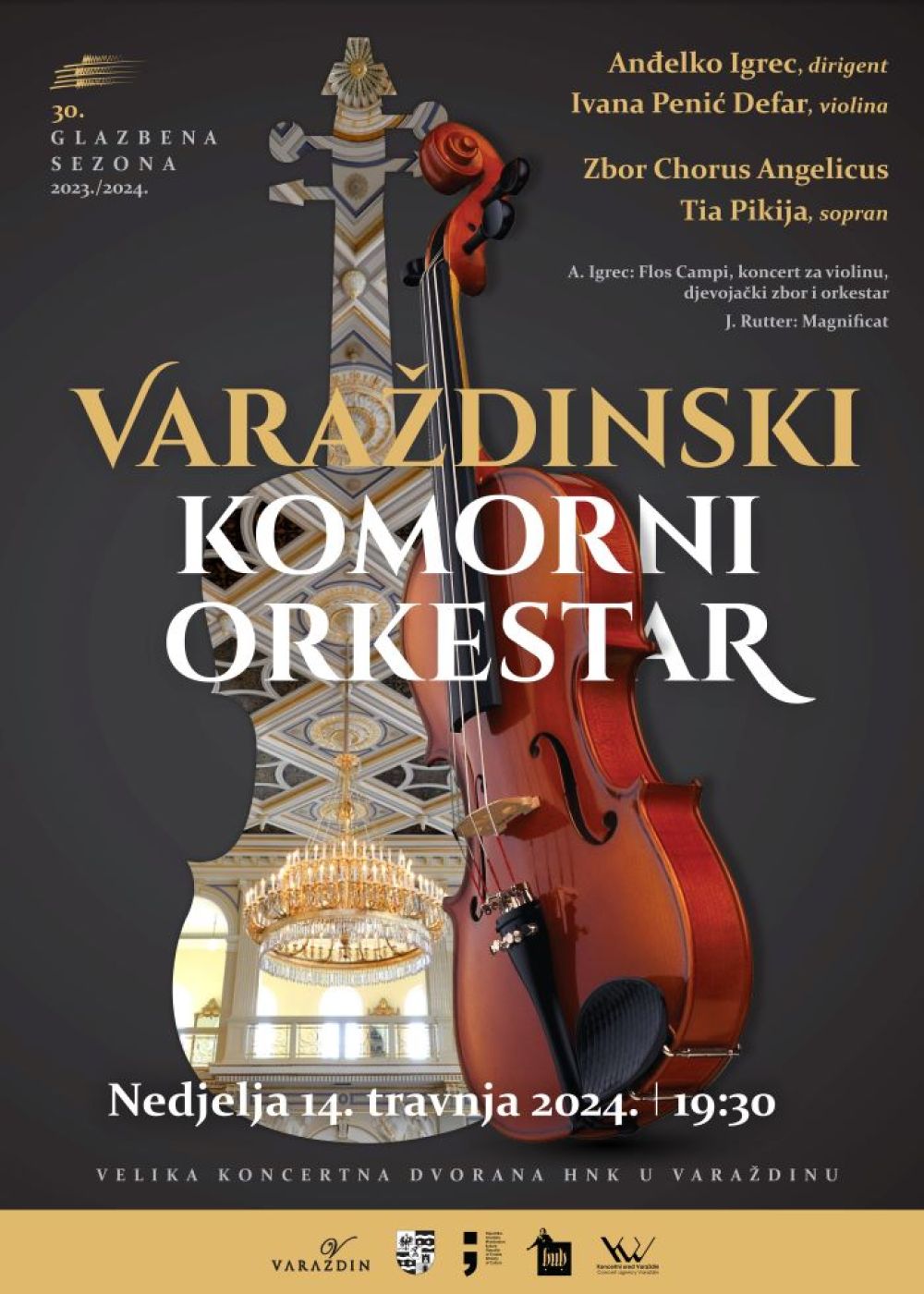 Četvrti koncert 30. sezone Varaždinski komorni orkestar priređuje u nedjelju, 14. travnja u 19.30 sati u Velikoj koncertnoj dvorani HNK u Varaždinu. Nastupaju: Anđelko Igrec, dirigent, Ivana Penić Defar, violina, Zbor Chorus Angelicus, Tia Pikija, sopran, Anđelko Igrec, Flos campi za violinu, djevojački zbor i orkestar. Ulaznice na blagajni HNK, učenici i studenti na Galeriji besplatno.