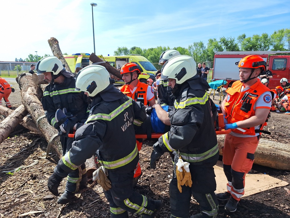 Žurne službe Varaždinske i Međimurske županije spremne odgovoriti svakom izazovu; Zagorec: Naši građani su sigurni! U povodu Nacionalnog dana hitne medicinske službe u pilani Golub u Varaždinu održana je zajednička vježba svih žurnih službi Varaždinske županije pod nazivom „Multidisciplinarni pristup unesrećenim osobama prilikom manipulacije trupcima“. Uz djelatnike Nastavnog zavoda za hitnu medicinu Varaždinske županije, sudjelovali su i djelatnici Javne vatrogasne postrojbe Grada Varaždina, Policijske uprave varaždinske i Zavoda za hitnu medicinu Međimurske županije, odnosno 40-ak pripadnika žurnih službi. Izniman stupanj spremnosti i odgovornosti žurnih službi pohvalila je zamjenica župana, ujedno i načelnica Stožera civilne zaštite Varaždinske županije Silvija Zagorec. Pohvaljujem organizatore, Nastavni zavod za hitnu medicinu Varaždinske županije, koji već dugi niz godinama organizira ovakve zajedničke vježbe svih žurnih službi na terenu u različitim situacijama. Svrha tih vježbi je pokazati višu razinu spremnosti, odnosno da se naše žurne službe u određenom trenutku, u određenoj situaciji, mogu nositi sa svim izazovima. Pohvaljujem timski rad žurnih službi, njihovu uvježbanost i koordiniranost što pokazuju ne samo kroz ovakve vježbe, već i kroz svoj svakodnevni rad, te naši građani, uz njih, zaista mogu biti sigurni – rekla je zamjenica župana Silvija Zagorec.