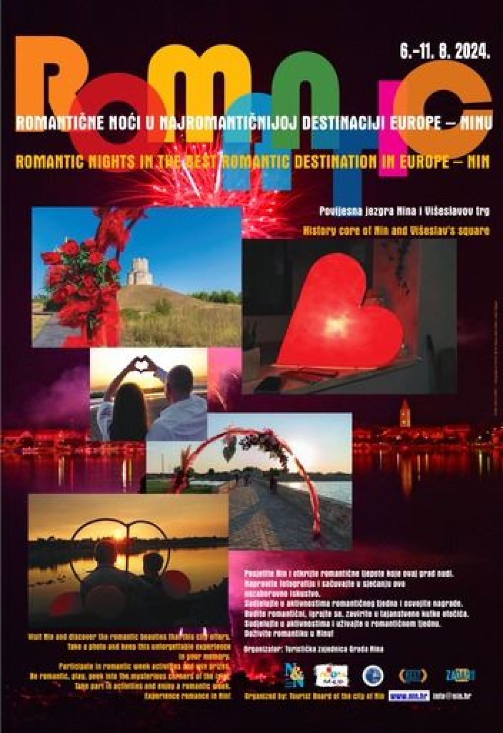 Kraljevski grad Nin, koji je već deset godina slavi Festival ljubavi, od kada nosi titulu jedne od najromantičnijih destinacija u Europi. Ovoga puta s ponosom najavljuje Romantični tjedan koji će se održati od 6. do 11. kolovoza 2024. godine. Smješten u prekrasnoj laguni, Nin nudi jedinstveno iskustvo preplavljeno romantikom i obavijeno tajanstvenom poviješću. Sa svojom bogatom kulturnom baštinom i prirodnim ljepotama, ovo mjesto je savršeno za sve zaljubljene. Ovogodišnji događaj obećava nezaboravno iskustvo za sve posjetitelje, bilo da ste par ili tražite svoju srodnu dušu.