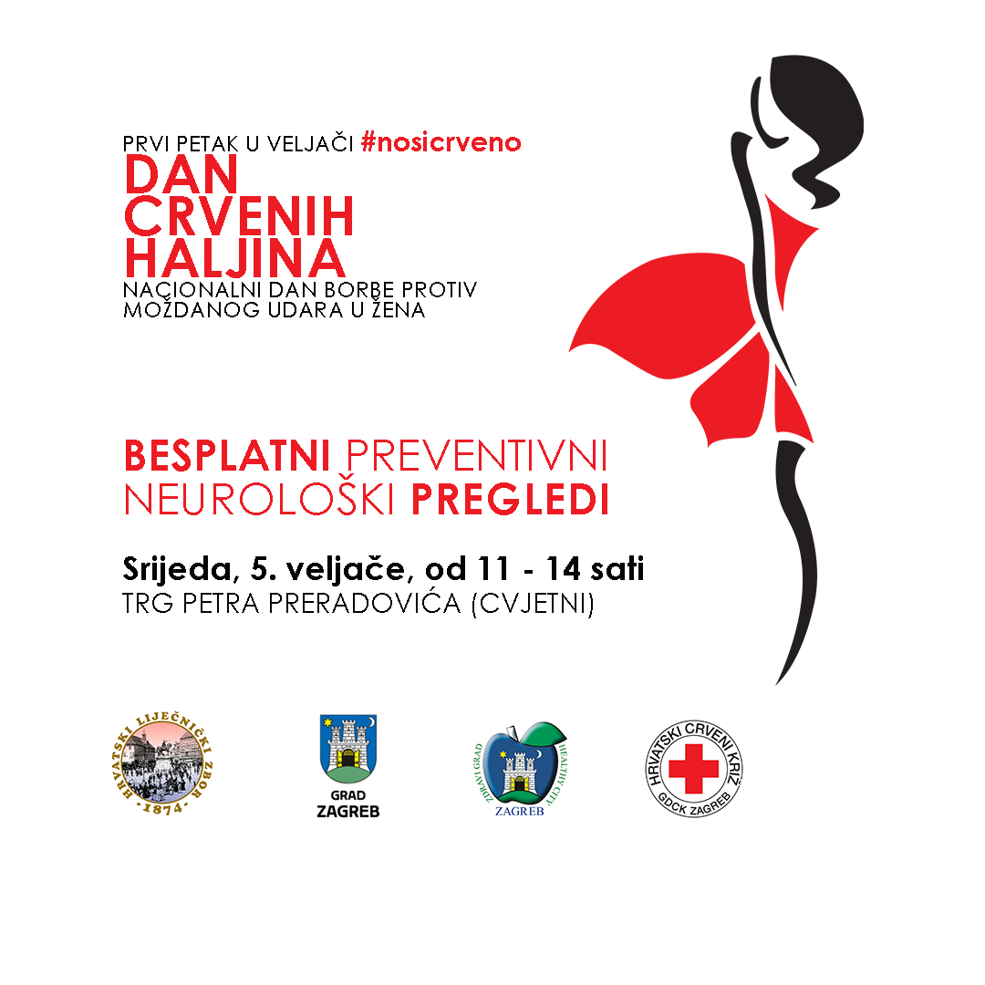 Edukativna javnozdravstvena akcija Dan crvenih haljina provodi se u organizaciji Hrvatskog liječničkog zbora – Hrvatskog neurološkog društva i Hrvatskog društva za spolne razlike u neurološkim bolestima. Organizacijski odbor ove hvalevrijedne akcije čine volonterke - neurologinje Arijana Lovrenčić-Huzjan, Zdravka Poljaković, Marina Roje Bedeković, Vesna Matijević i Svjetlana Šupe, logopetkinja Dinah Vodanović i poduzetnica Andreja Pasarić. Sabor RH prepoznao je važnost ove kampanje pa je prošle godine Dan Crvenih haljina, odnosno prvi petak u veljači, proglašen Nacionalnim danom borbe protiv moždanog udara u žena.