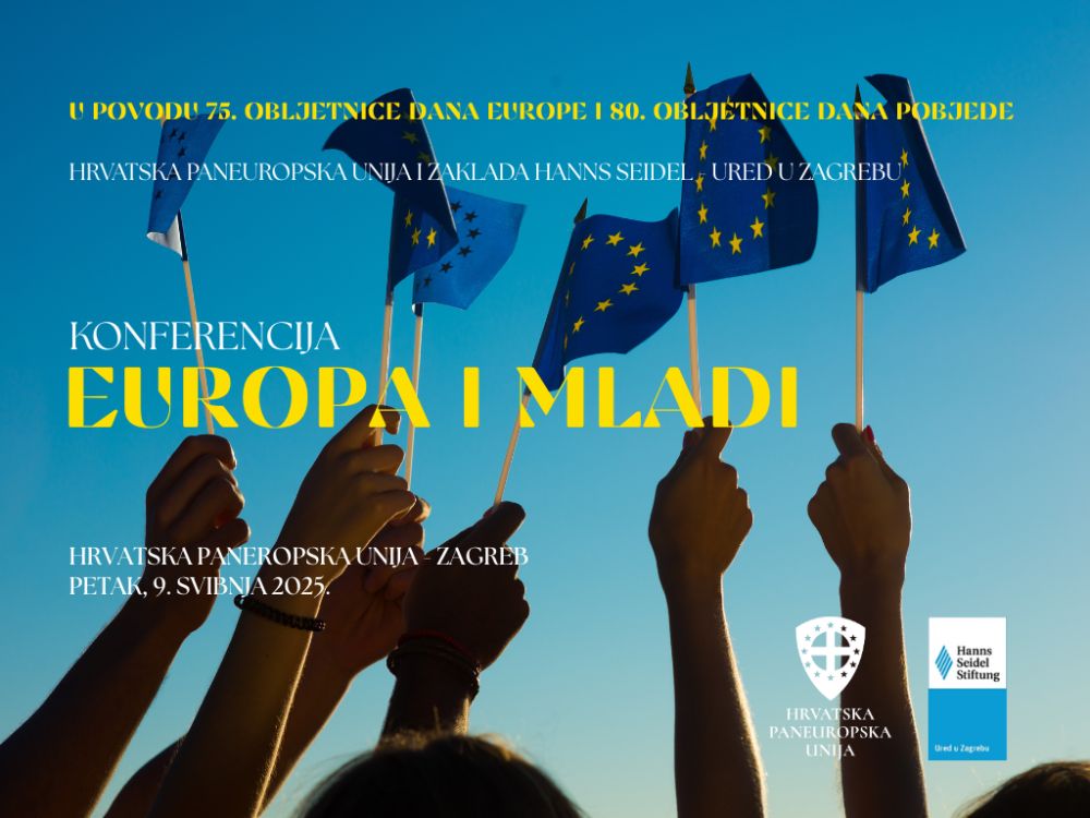 U povodu 75. obljetnice Dana Europe i 80. obljetnice Dana pobjede, Hrvatska paneuropska unija i Zaklada Hanns Seidel – Ured u Zagrebu organiziraju konferenciju "Europa i mladi", koja će se održati u petak, 9. svibnja s početkom u 10:30 sati u prostorijama Hrvatske paneuropske unije u Zagrebu (Jurišićeva 1a, I. kat).