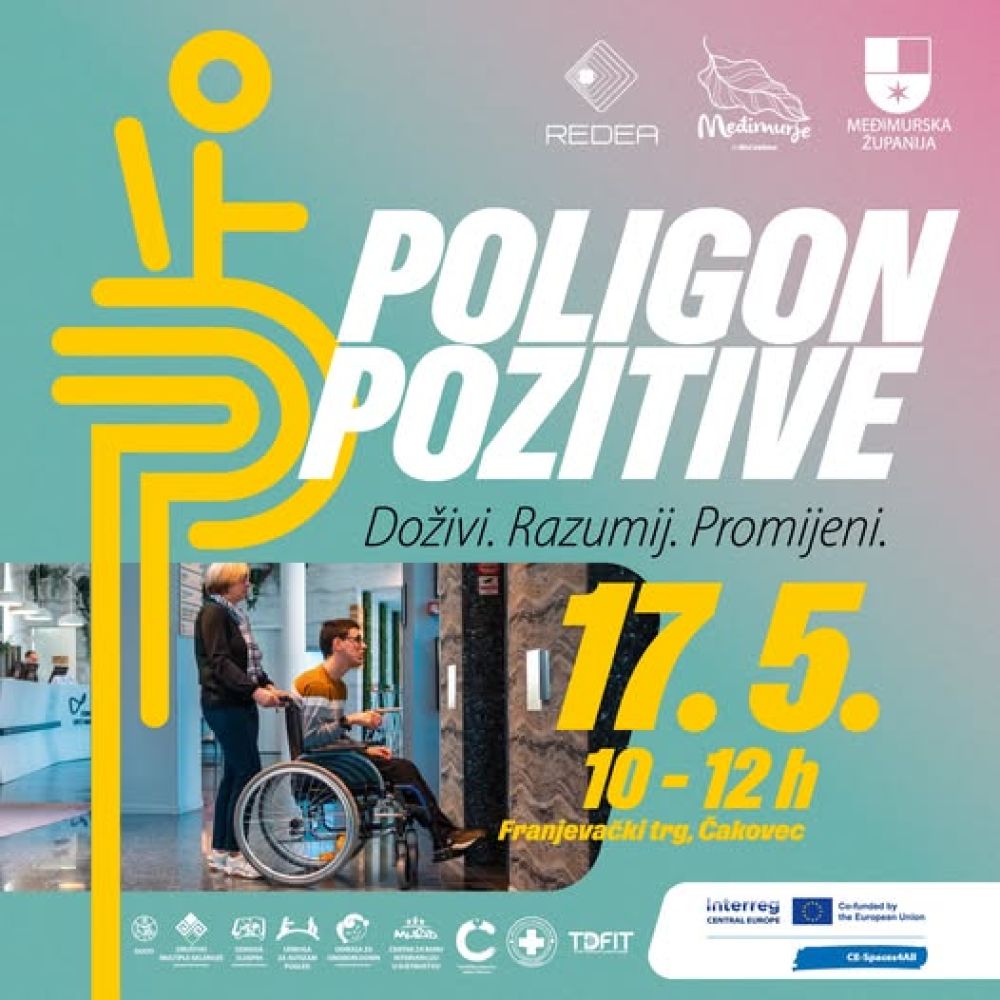 Poligon pozitive, interaktivno javno događanje s ciljem promjene percepcija prepreka s kojima se svakodnevno suočavaju osobe s invaliditetom, u organizaciji je Javne ustanove REDEA i Turističke zajednice Međimurske županije te Međimurske županije kao partnera projekta CE-Spaces4All, održano u subotu, 17. svibnja, u Čakovcu. Građani koji su se odazvali kroz jednostavne su i edukativne zadatke osjetili prepreke kroz koje prolaze njihovi sugrađani te učili kako ih zajedno ukloniti: U pozivnici za događanje pozvani su da dođu „podržati, upoznati i naučiti nešto novo“.