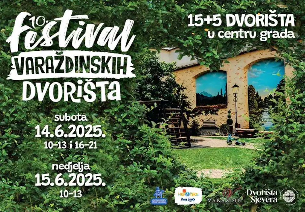 Već deset godina Festival varaždinskih dvorišta, u organizaciji Turističke zajednice grada Varaždina, poziva vas da provirite iza pročelja raskošnih palača i kuća u povijesnoj jezgri, udahnete atmosferu skrivenih prostora i doživite sve ono najbolje što Varaždin nudi. Na linku je letak s detaljnim programom Festivala varaždinskih dvorišta - LETAK
