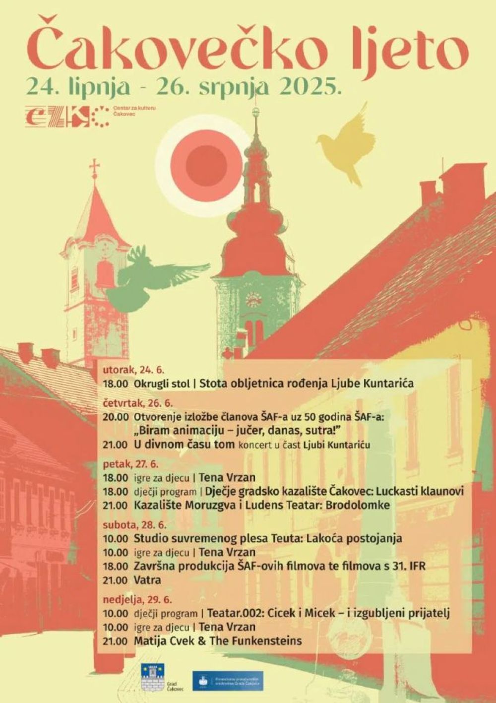 Čakovečko ljeto 2025. u znaku je velike proslave 100. obljetnice rođenja Ljube Kuntarića, a nastavlja se bogatim kulturno zabavnim programom - koncertima, izložbama, predstavama...