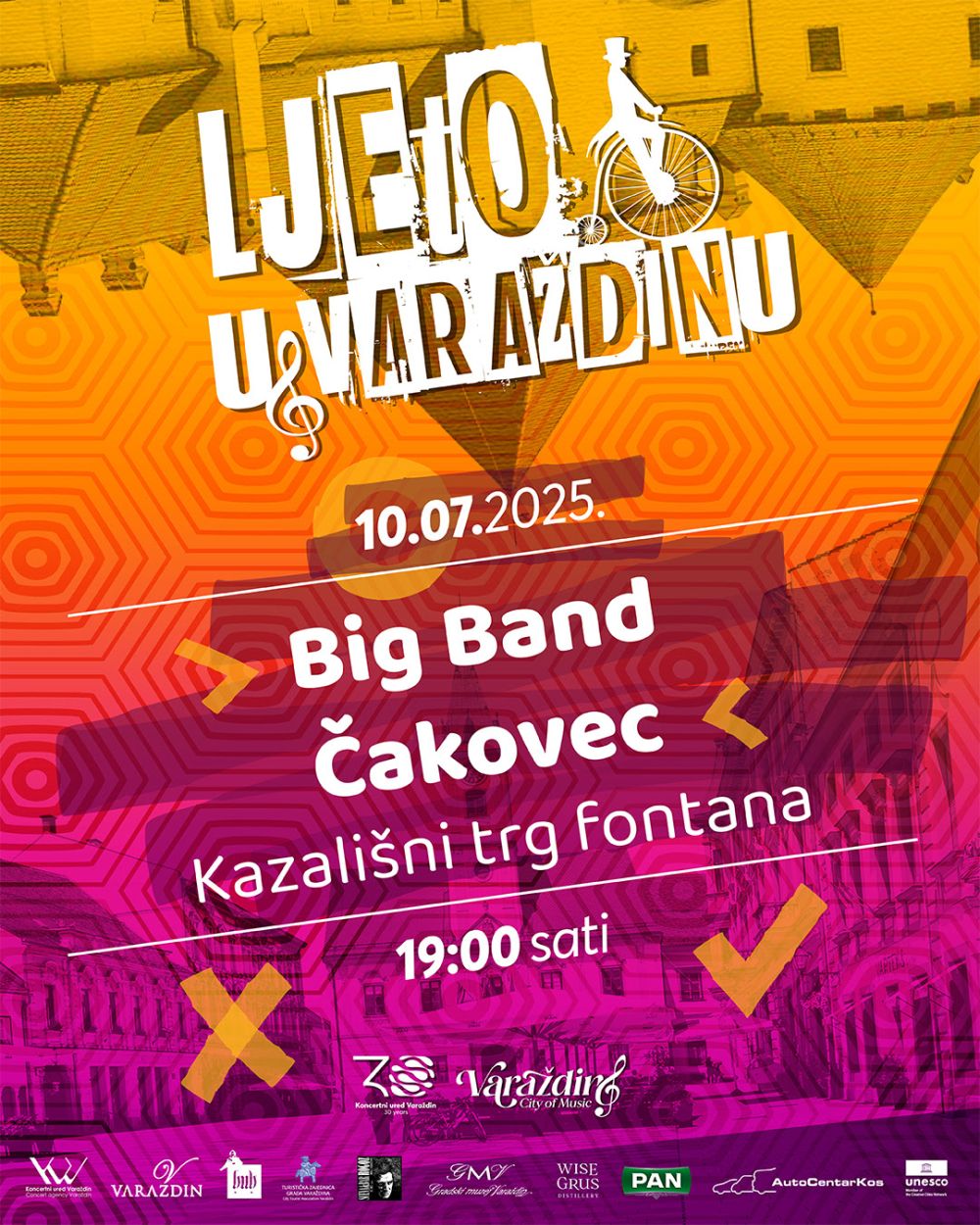 Koncert Big Banda Čakovec počet će u 19 sati. Nakon toga zabavlja Vas DJ kod Kazališnog trga od 21 sat.
