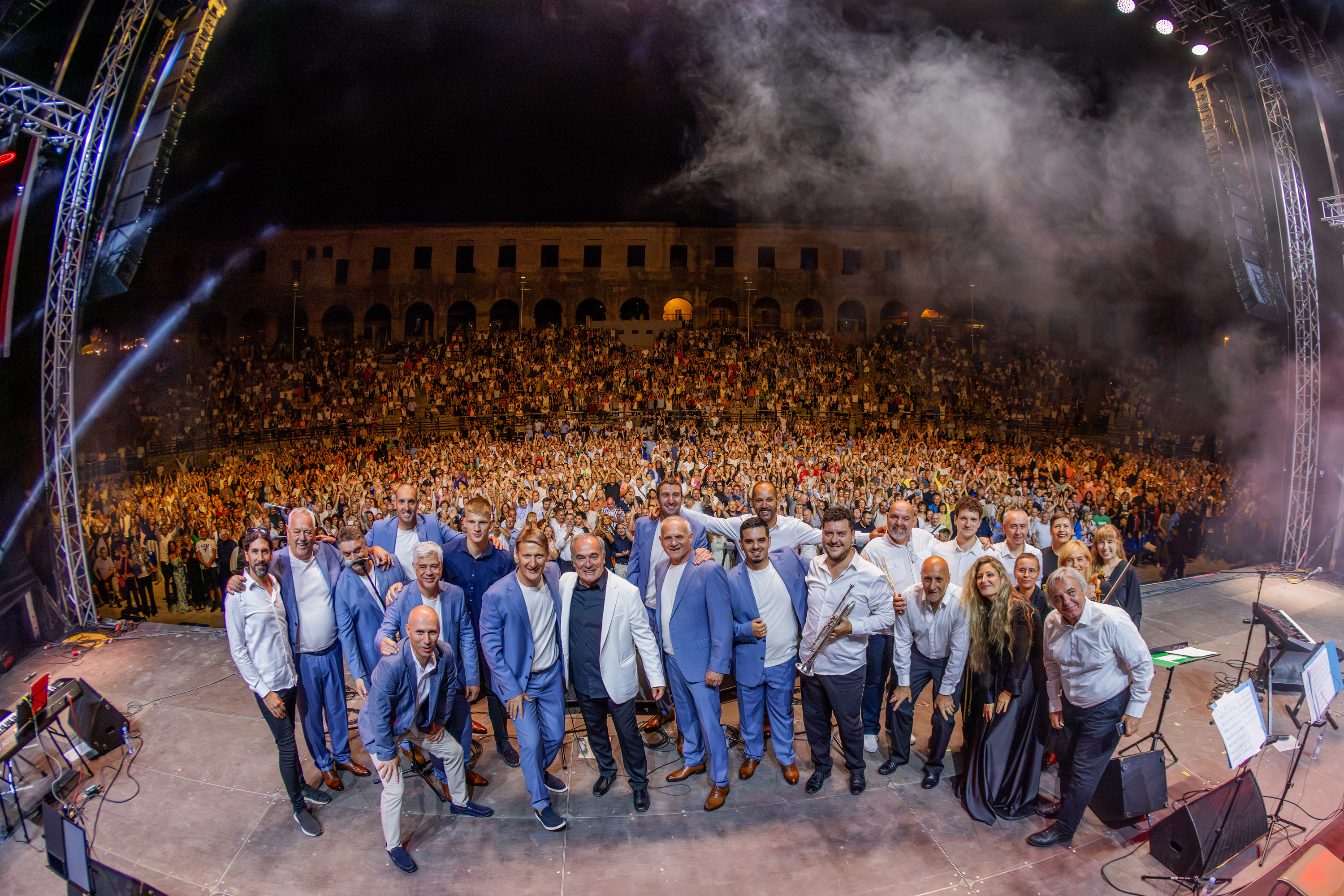 Pulska Arena sinoć je bila ispunjena emocijama, glazbom i nezaboravnom atmosferom – Tomislav Bralić i klapa Intrade spektakularnim koncertom obilježili su 40 godina uspješne karijere. Tisuće posjetitelja pjevalo je uglas s klapom, uživajući u nizu najvećih hitova, posebnoj produkciji i nezaboravnim trenucima.